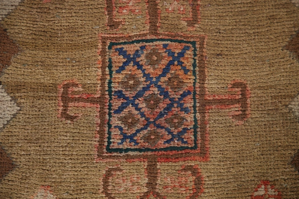 Rug was great — even better than the pictures described. a very good value. shipping was super fast. The packaging was ok — it tore during shipping and part of the rug was a little dirty and dusty, but it was the back and no problem to clean up. The labeling was informative but odd that is was labeled as “60-70 years old” which is meaningless when you don’t know when that was written. It should say something much more sensible like “1950s-1960s” or “~1960s” would much more sensible.