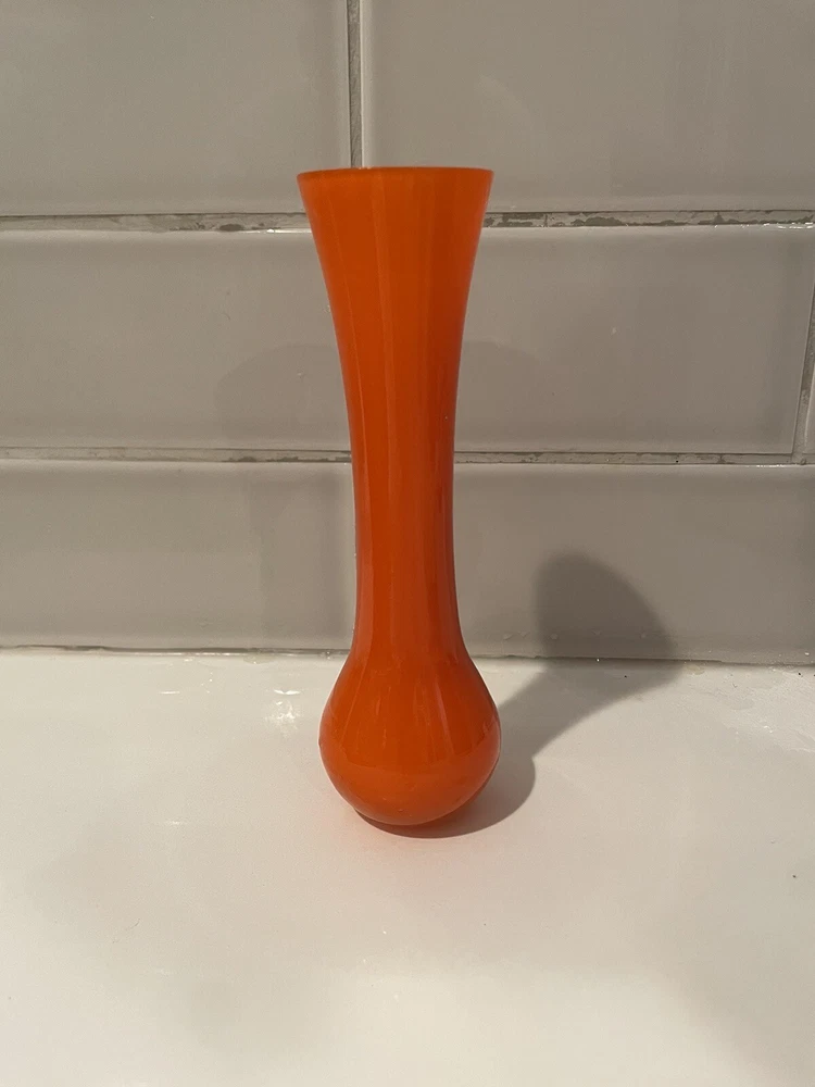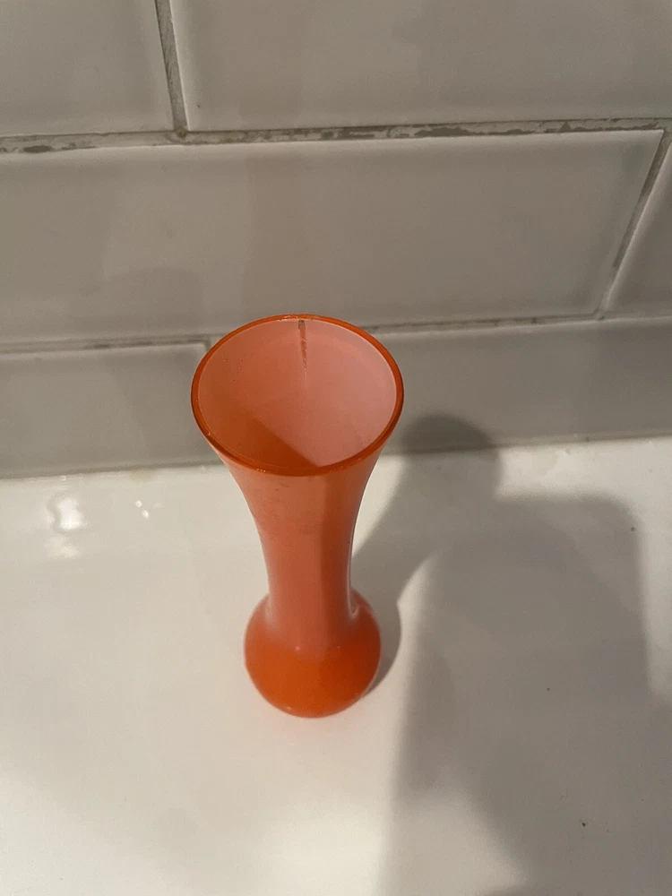 On the bottom of the vase, there is a slight indentation, which is part of the design, on the top inside there is a hairline crack.. Please see pictures.