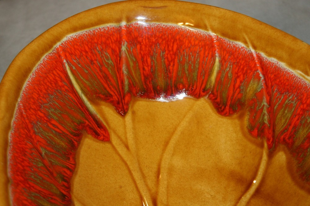 Vintage Glazed Serving Bowl/Orange Brown made in California, USA Brand and year made is unknown but it resembles mid century pottery - it's beautifully made in excellent condition - appears to be never used - no chips or dings - Dimensions - 18 inches by 3.25 inches Sold as seen in the photos - any questions please ask - thanks for looking