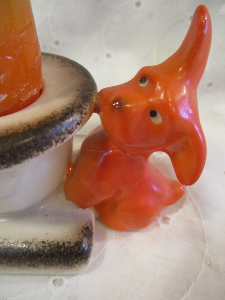 For Sale is this Darling Vintage Goebel 1953 Orange Scottie Dog Candle Holder & Candle. Excellent Condition. NO Chips, NO Crazing & NO Cracks. Please see ALL photos for SIZE & Condition. SMOKE FREE HOME THANK YOU FOR LOOKING AND HAPPY eBAYING!!!!
