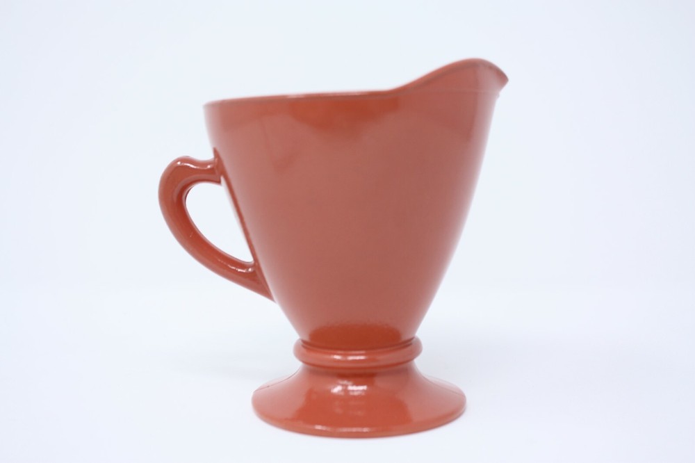 Hazel Atlas Burnt Orange Milk Glass Creamer Please review photos carefully as they are also part of the description, please zoom in and take a closer look. Any detected damage is noted in description and shown in pictures when possible. Descriptions are written to the best of my knowledge. Although an amateur, I will provide as much information as I can, so you are confident with your purchase. Any vintage pieces have been pre-loved and consequently may have slight imperfections and show age related wear. Bubbles and/or mold creases are sometimes common in glassware and not considered damage. This creamer is free of chips or cracks, but due to age may have some imperfections such as minor scratches, trim wear, light staining. Most of my items are from estate and auction sales. Approximate measurements are: 4" x 3 1/2" I make every effort to package each item as safe and secure as possible. I cannot be responsible for them when they leave my hands due to shippers handling of package. In the unlikely event an item should arrive broken/damaged it is the buyer’s responsibility to file a claim as the buyer has the item to bring to carrier for proof of damage. Please keep all the packing and the box to show the carrier. Please contact me directly, not eBay, and I will gladly help in any way I can if there are questions. I appreciate any positive feedback that is left, it helps boost my seller ratings, just like it does for you as a buyer. If for any reason there is a problem and you feel I have not delivered 5-star service, please contact me before leaving any negative feedback and I will make every reasonable attempt to work things out Thank you for looking and please check out my other eBay listings. INTERNATIONAL CUSTOMERS: Shipping is provided by the eBay Global Shipping Program. Please refer to the program during checkout for rates. Ref Id: 2107-020 There are no returns for buyer remorse. Returns are only accepted for errors in description. If I neglect to describe something I feel is insignificant, I will not accept them back. IF I accept your return, I will issue a refund upon receipt of your item provided that it is returned in its original packaging and in the same condition as it was when it was sent. I will not refund return shipping fees unless I sent you an incorrect item.