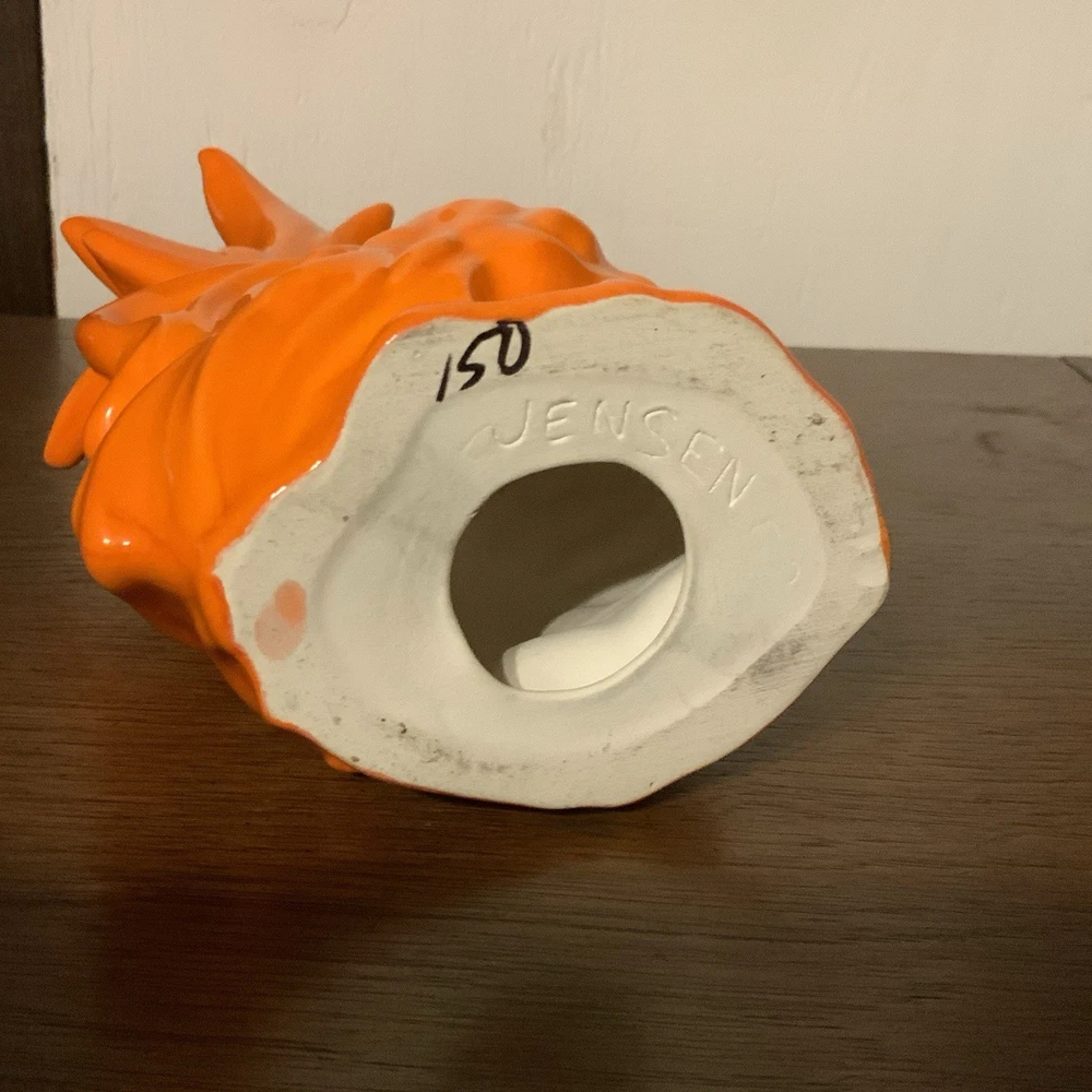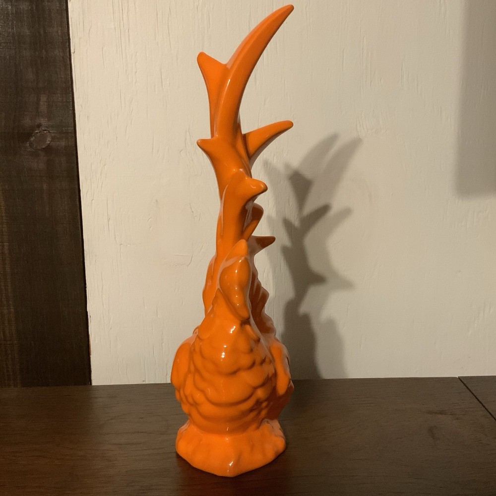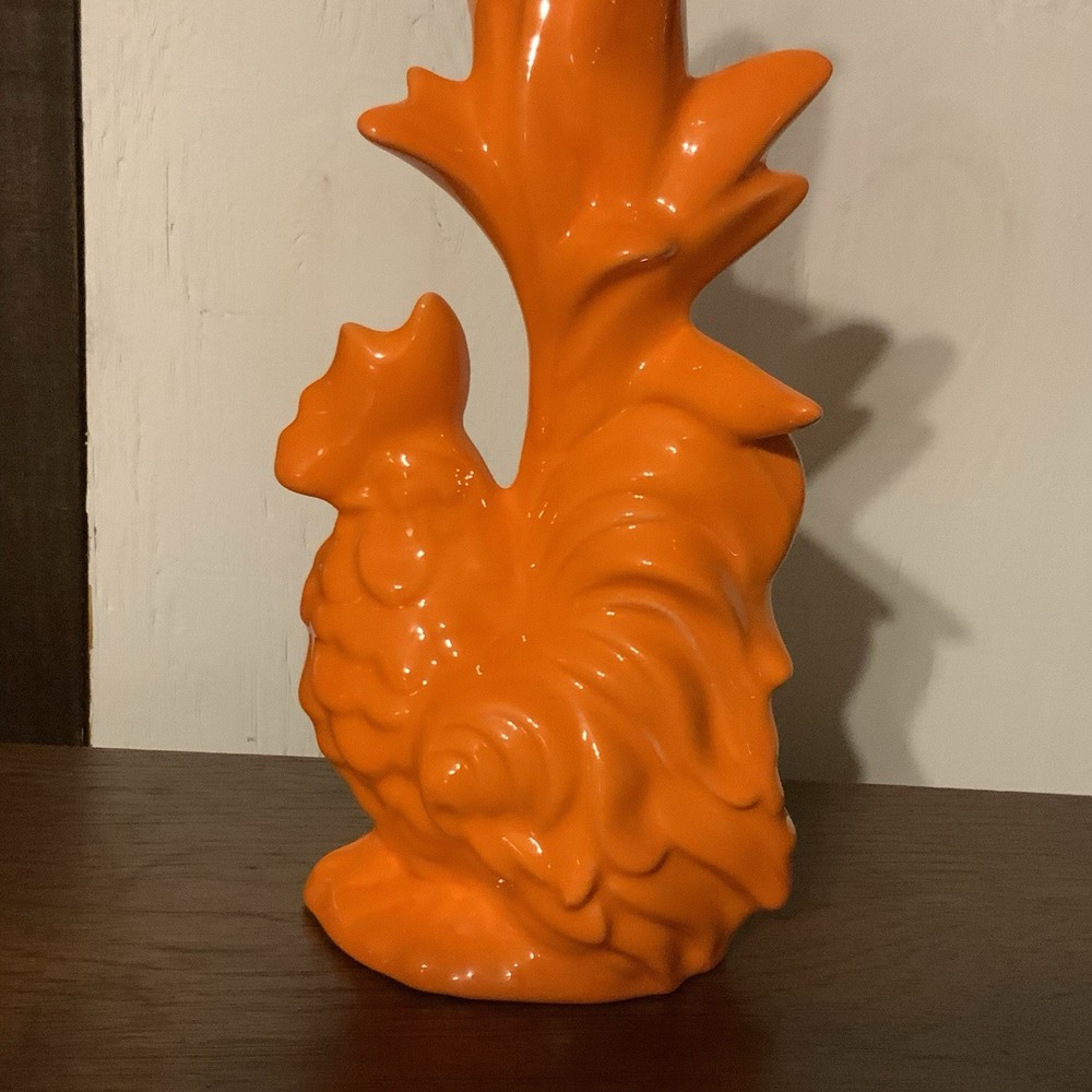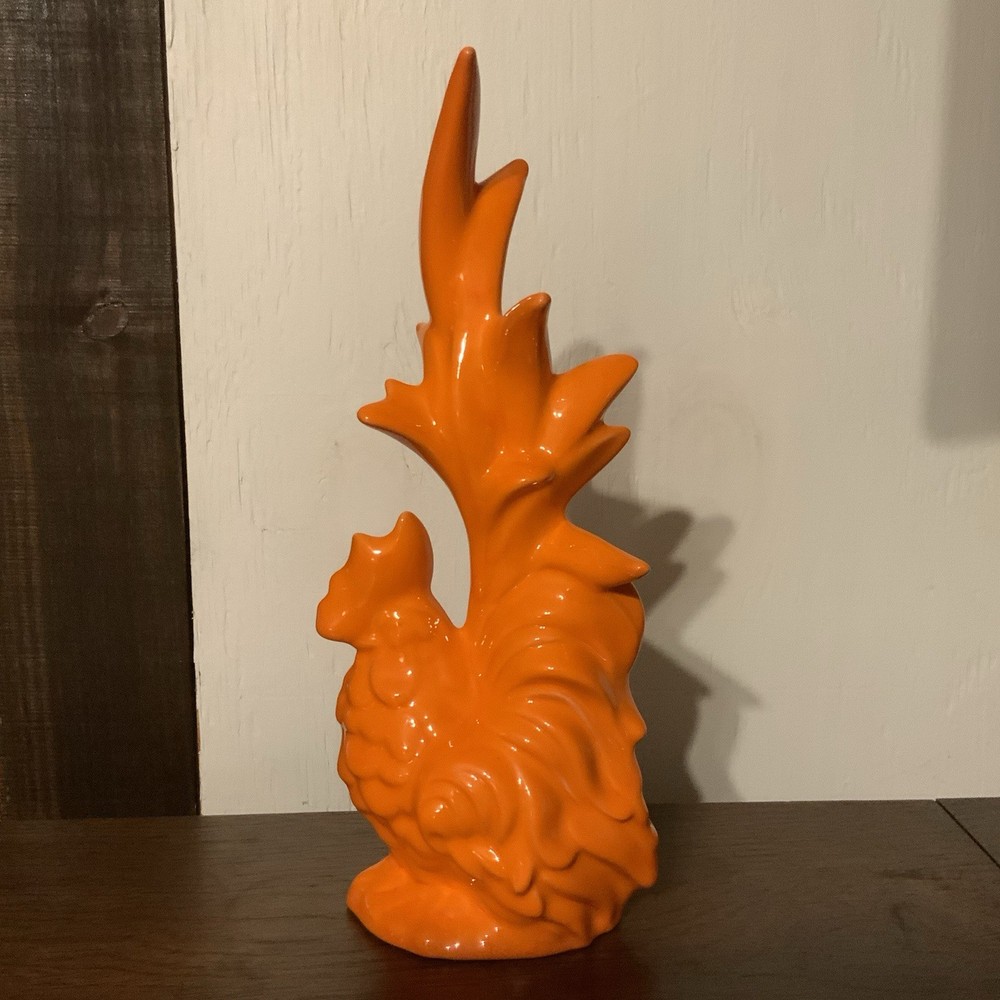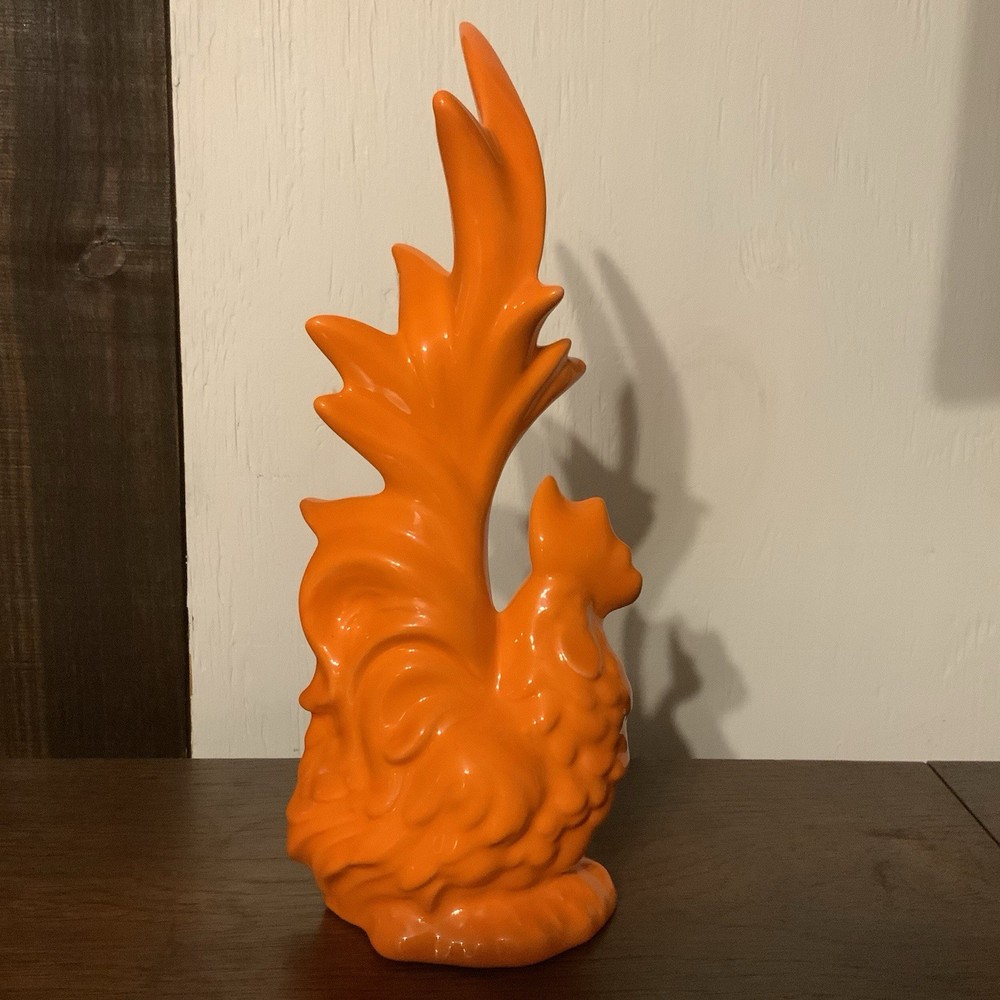 Excellent like new condition Vintage Mid century modern Ceramic rooster figure Beautiful bright neon orange color. Perfect for a country kitchen, farmhouse decor. Unique collectible piece for any chicken lover Measurements: Height 11.5” Width 3.5” Length 5”