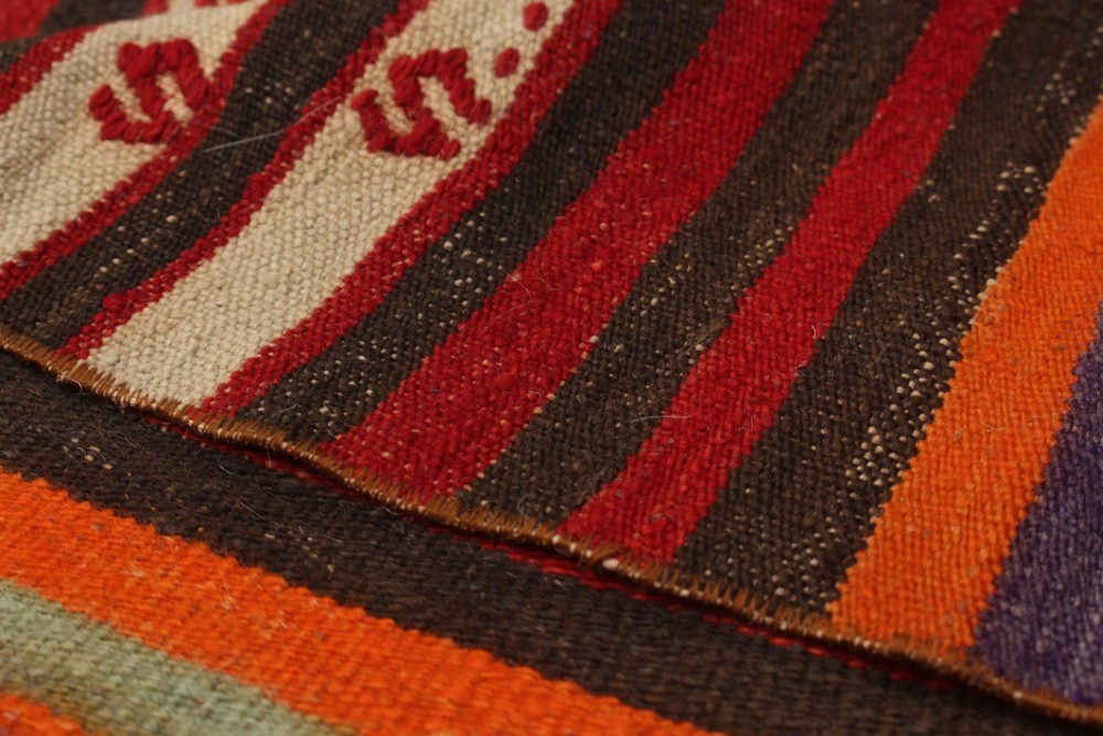 Turkish Rugs Afghan Rugs Indian Rugs Runner Rugs Flatweave & Kilim Rugs Vintage Hand Woven Carpet 6'2" x 10'6" Traditional Wool Kilim Rug SKU: 256295 Rug Collection: Boho Main Color: Red Country of Origin: Turkey Age: Semi-antique Weave: Flat-Weave Material: 100% Wool Density: Pile Height: Approx 1/6" Made of flatweave kilims, sewn together to form a larger one-of-a-kind rug Bohemian, Flat-weaves & Kilims, Stripes, Tribal, Vintage style kilim with Black, Cream, Light Green, Orange, Red, Slate Blue accent colors Imported from Turkey and crafted using the finest weaving techniques Flat-weave and constructed from 100% Wool with 100% Wool foundation 6-Feet 2-Inch by 10-Feet 6-Inch (188cm x 320cm) TRUSTED EBAY SELLER SINCE 2000 View Our Feedback About Us Contact Us