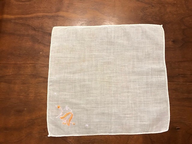 Sweet Vintage Handkerchief with orange tulip with purple stem EMB in the corner; 8.5 X 9 in. in size; Excellent Condition;