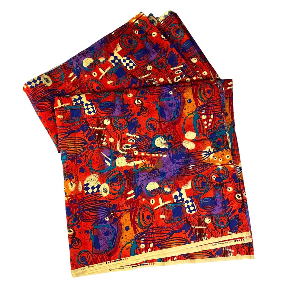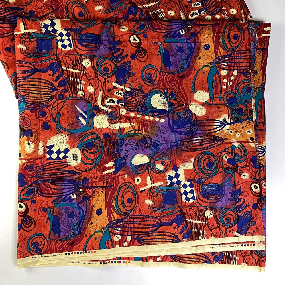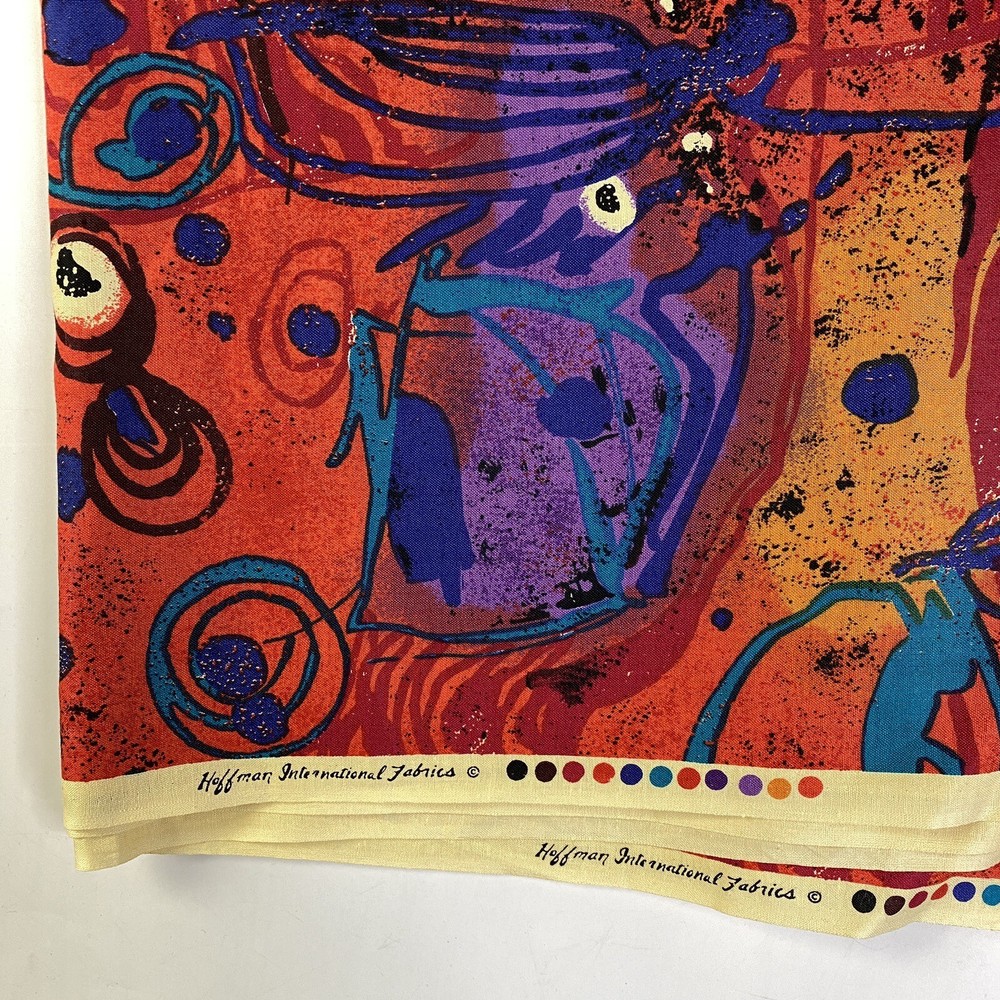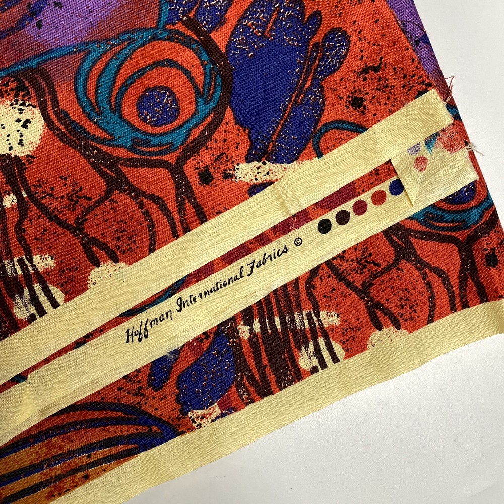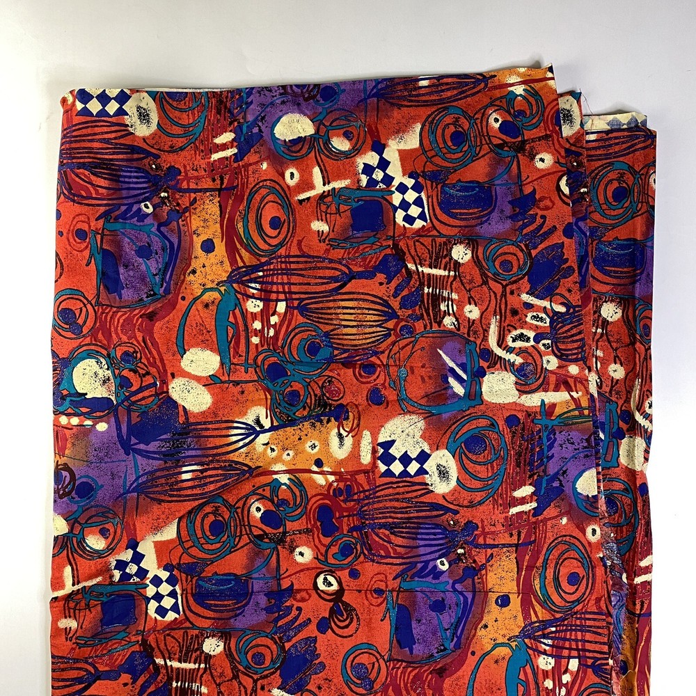 large yardage fabric - apx 200" long x 44" wide Vintage Hoffman Fabric Mid Century Retro Graffiti Orange Blue Checker Paint print...