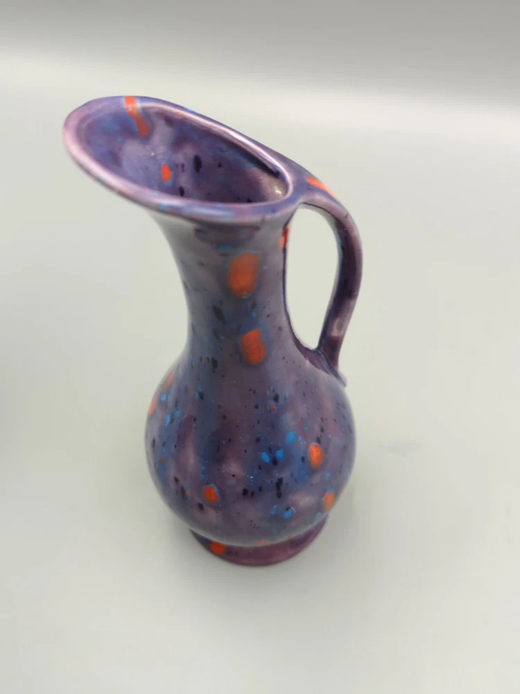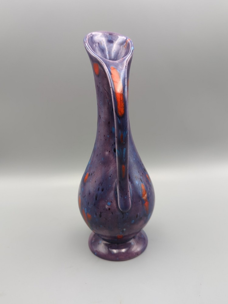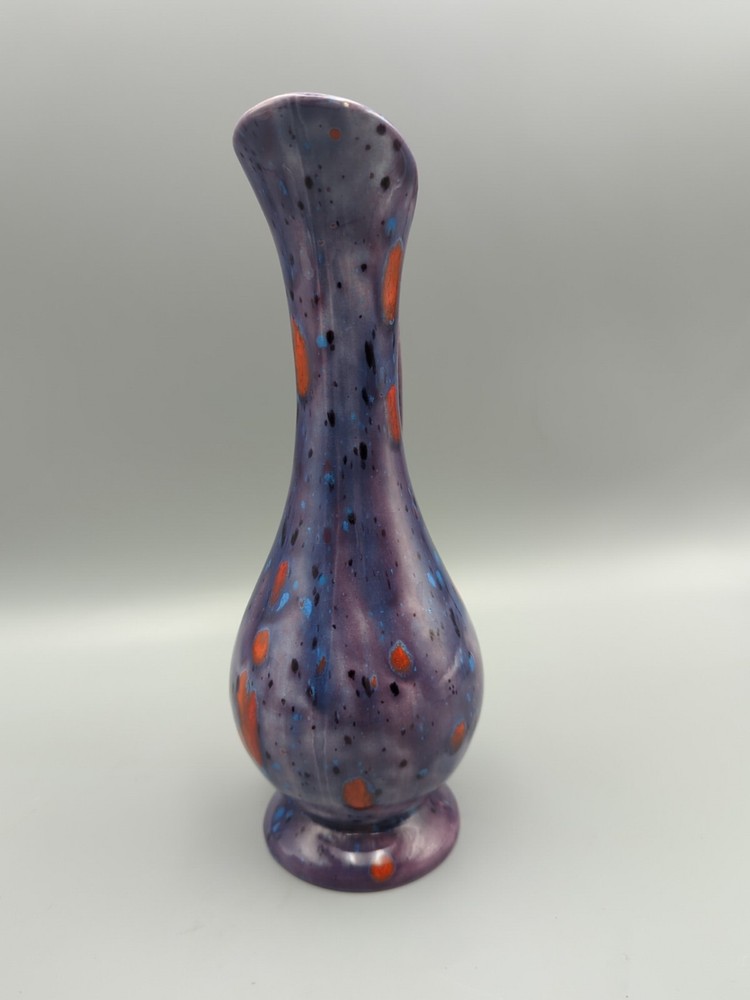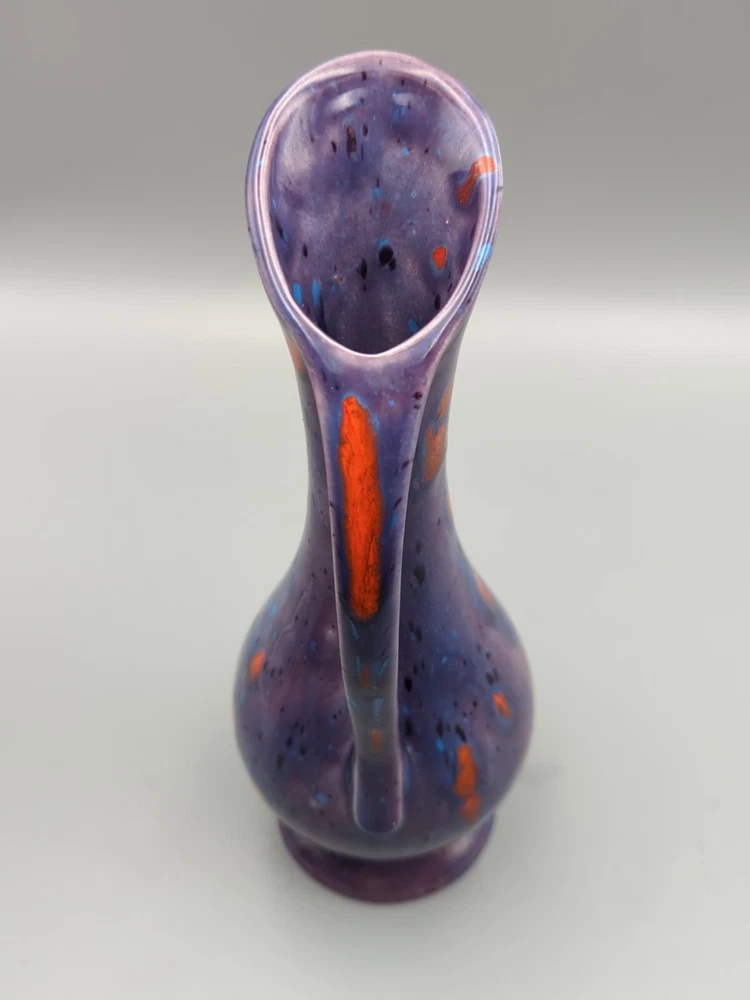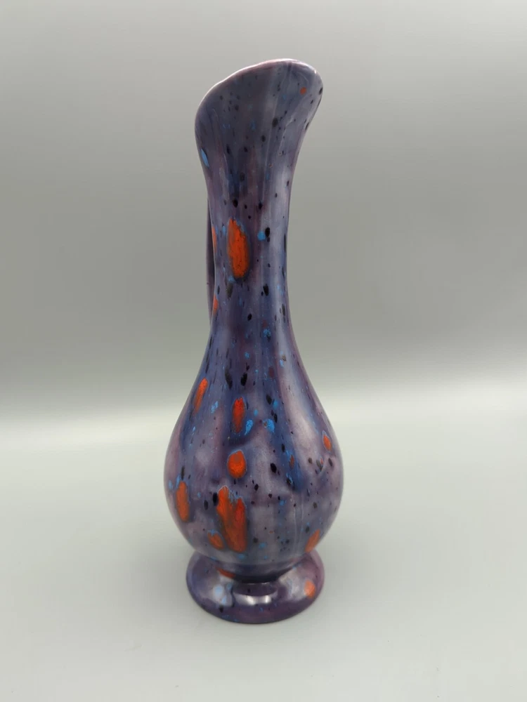 Vintage MCM Holland Mold Small Bud Base with Handle About 9" tall Excellent colors Purple, Orange, Blue etc. Vase is in very good condition with only a few minor chips See Pics Please inspect photos carefully as you will receive the item pictured Thank you for looking Ships next Business Day