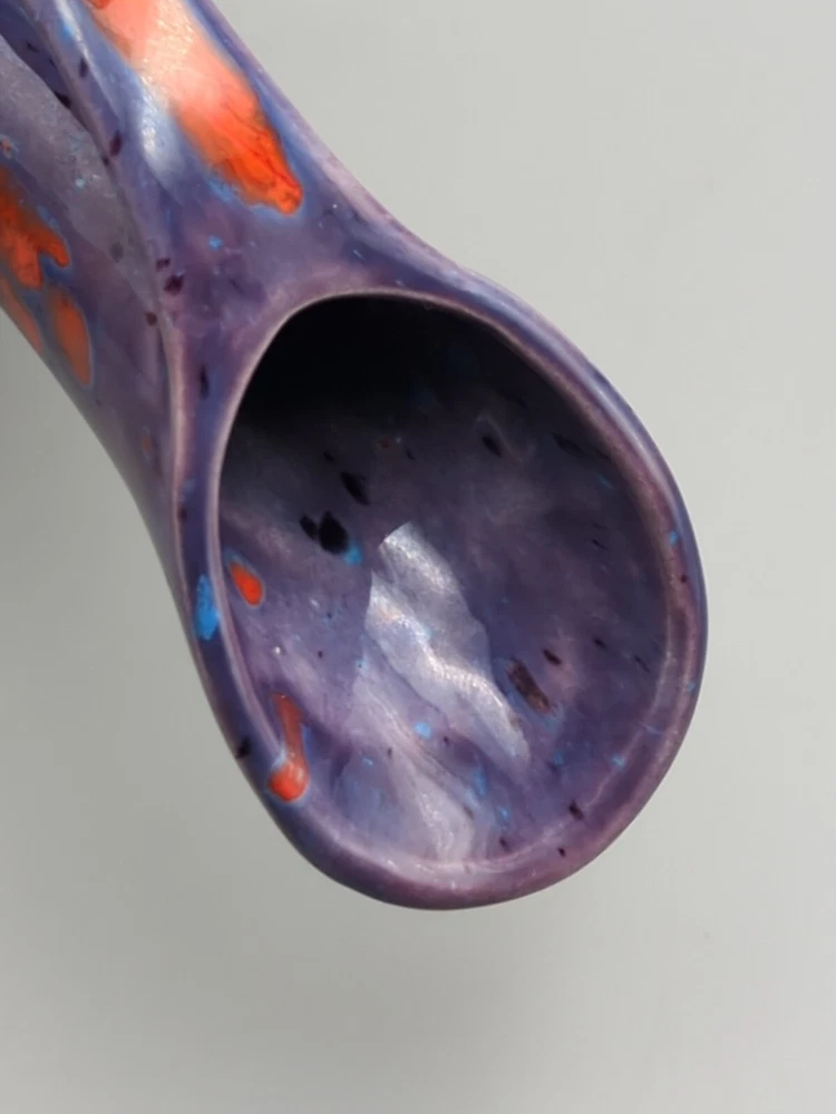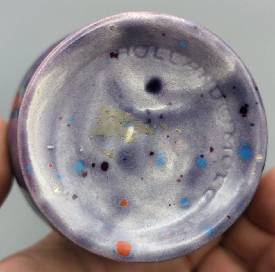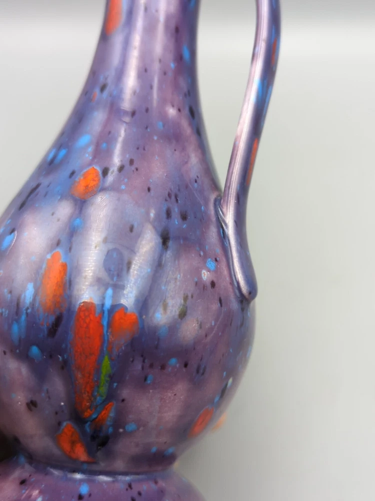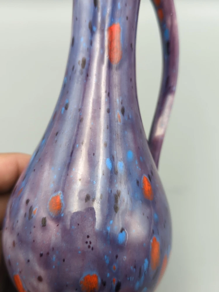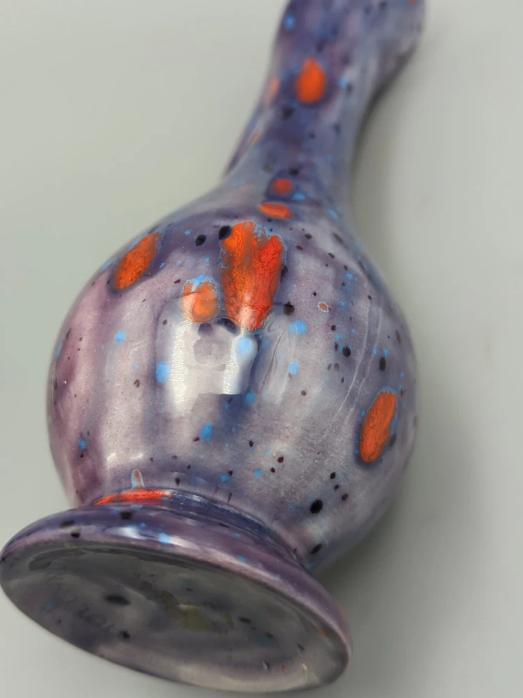 Vintage MCM Holland Mold Small Bud Base with Handle About 9" tall Excellent colors Purple, Orange, Blue etc. Vase is in very good condition with only a few minor chips See Pics Please inspect photos carefully as you will receive the item pictured Thank you for looking Ships next Business Day