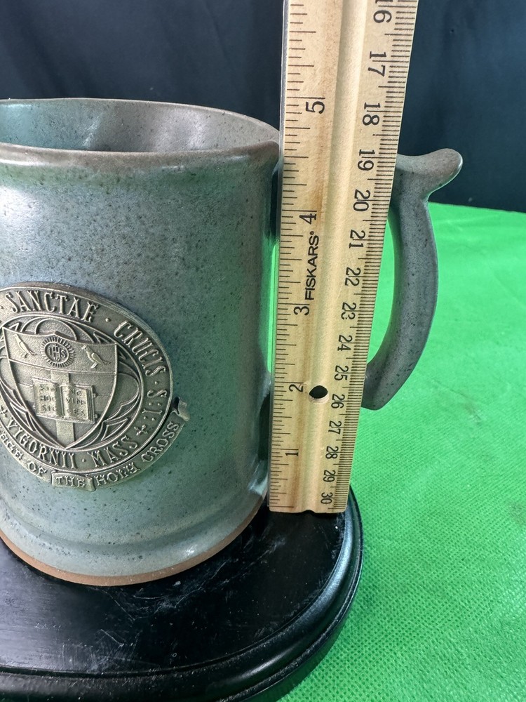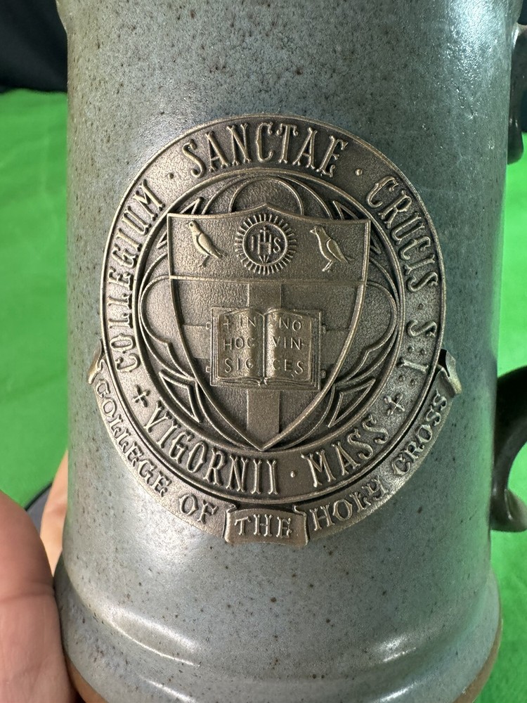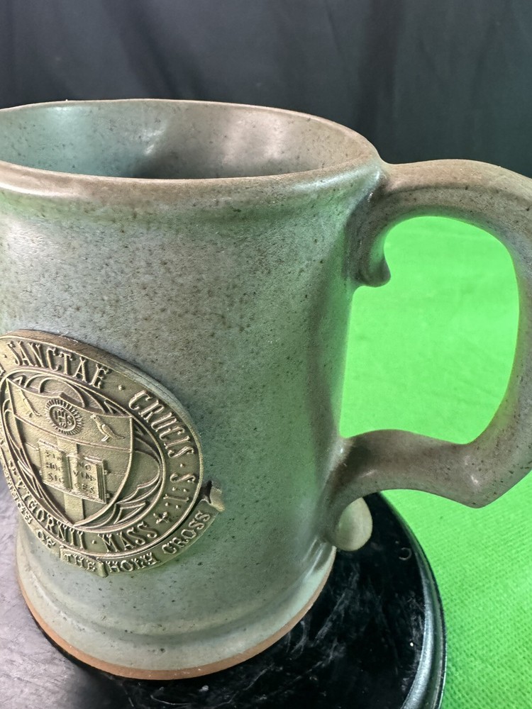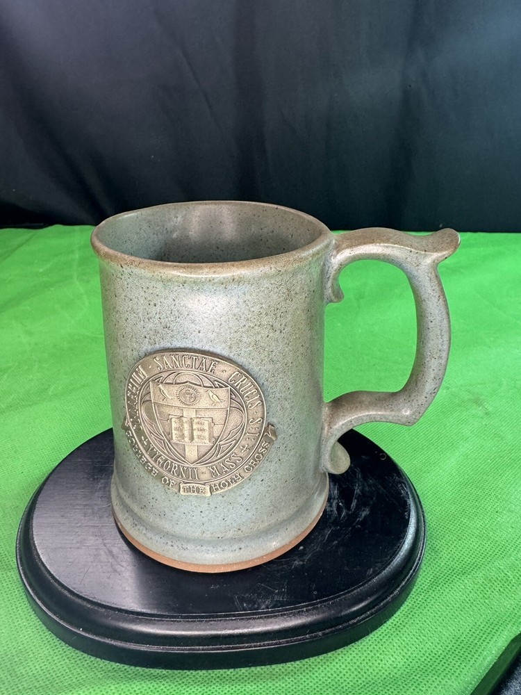 Vintage Holy Cross College Ceramic Mug 4.8” Creative Modeling & Die Co. Description: This is a vintage ceramic mug featuring the seal of the College of the Holy Cross, Worcester, MA. The mug was made by Creative Modeling & Die Co. and has a speckled gray glaze with a raised metal emblem on the front. • Height: 4.8 inches • Material: Ceramic with metal emblem • Maker: Creative Modeling & Die Co. • Condition: Pre-owned, in good vintage condition with minor wear (see photos for details). A great collectible for Holy Cross alumni or vintage pottery enthusiasts! Let me know if you want any modifications.