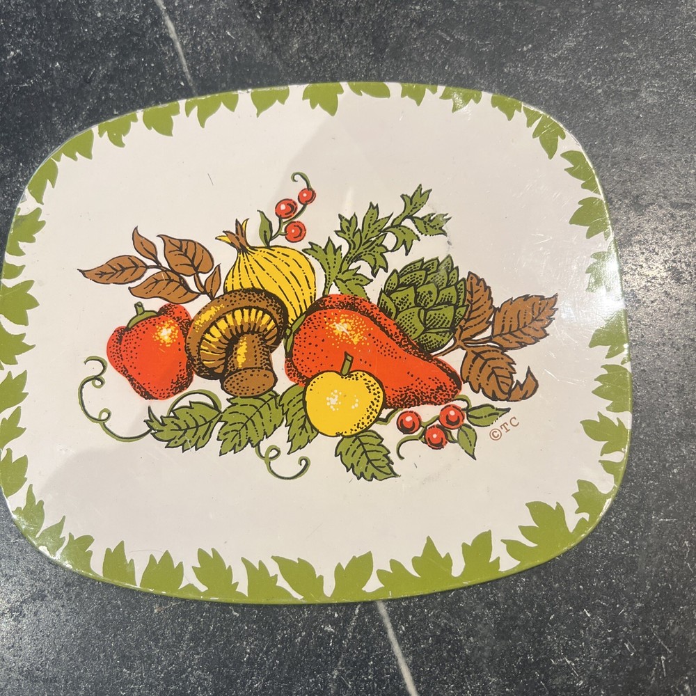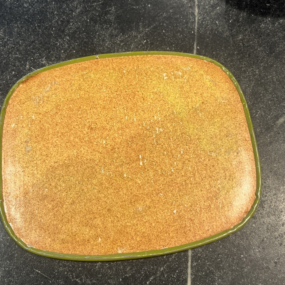 Vintage Hot Mat Pad Decorative Metal Insulated MUSHROOM Mid-Century Green Orange. Has a couple small scrapes in the metal which are pictured. Please look closely at all pictures. Otherwise in good useable condition. Great colors and design for mid century modern