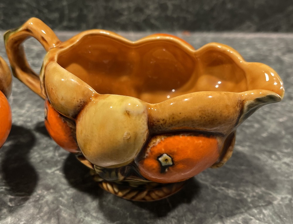 Vintage Inarco Japan Orange Trinket Sugar Bowl w/Lid Mid Cent Fruit. Great Condition. No cracks. One small paint loss area on orange. See pics....
