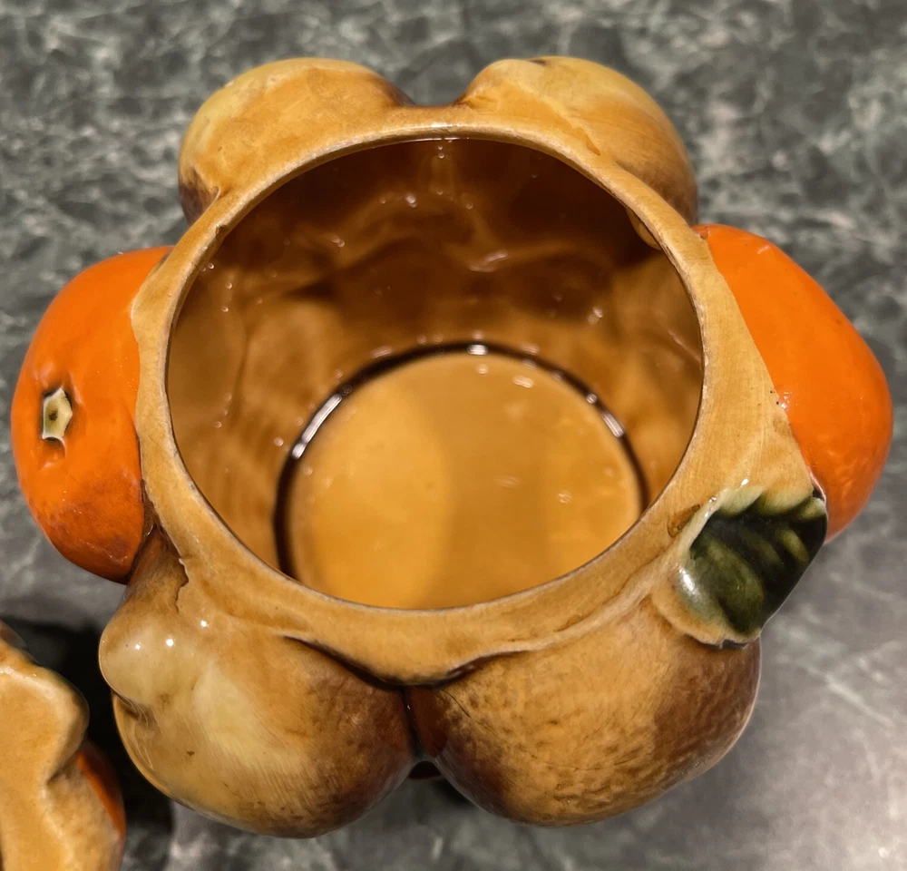 Vintage Inarco Japan Orange Trinket Sugar Bowl w/Lid Mid Cent Fruit. Great Condition. No cracks. One small paint loss area on orange. See pics.