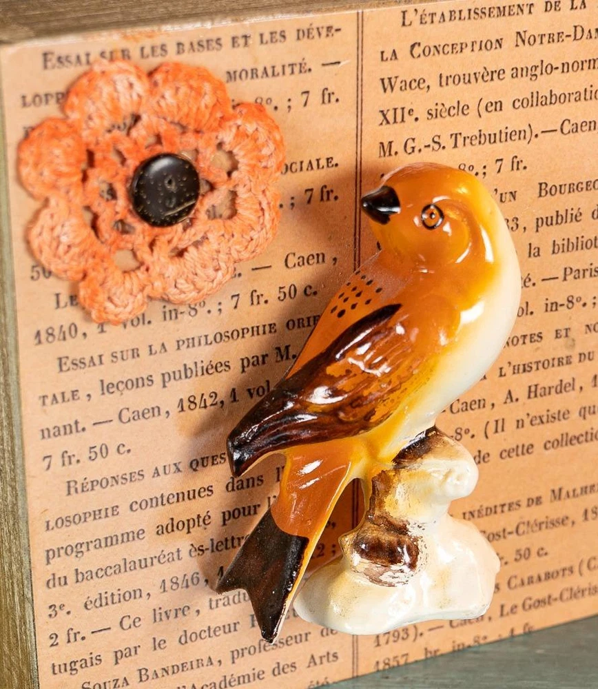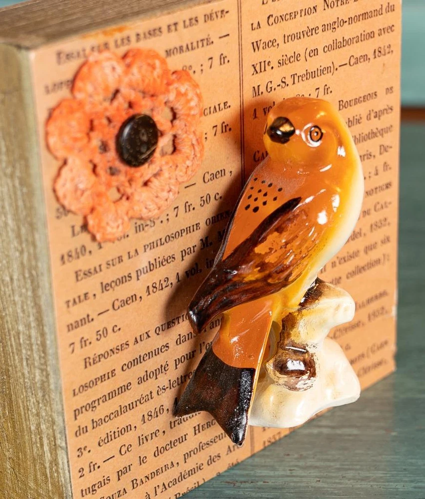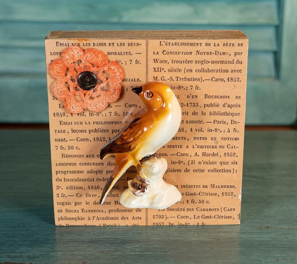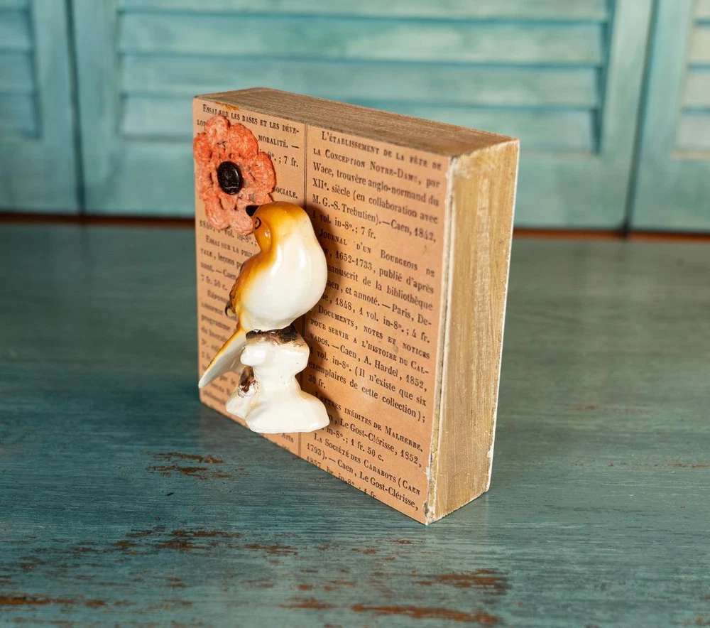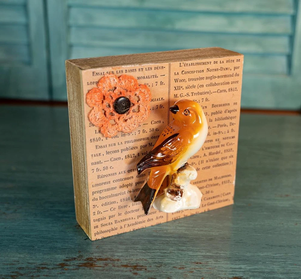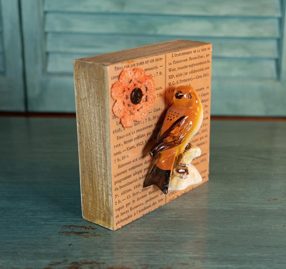 Vintage Inspired 5x5x1 Wall Plaque Peach Orange Bird Lori Siebert Creative Co-op Vintage Inspired 5x5x1 Wall Plaque Peach Orange Bird Lori Siebert Creative Co-op Click images to enlarge Description Charming vintage inspired plaque designed by artist Lori Siebert for Creative Co-Op. Features an orange ceramic like hand painted bird mounted on a copy of a peach colored book page printed in French with a little knitted doily accented with a button in one corner. Square in shaped and box like, measures 5" x 5" x 1", and can either be hung or is also free standing. The can of Coke is for a sizing reference. Has a likeness of the artists signature on the backside. In gently used vintage condition-it is actually made to look vintage! Cute piece with a shabby cottage appeal! Please email with any questions or concerns before bidding. Thanks so much for your interest! Images sell! Get Supersized Images & Free Image Hosting Create your brand with Auctiva's Customizable Templates. Attention Sellers - Get Templates Image Hosting, Scheduling at Auctiva.com. Track Page Views With Auctiva's Counter