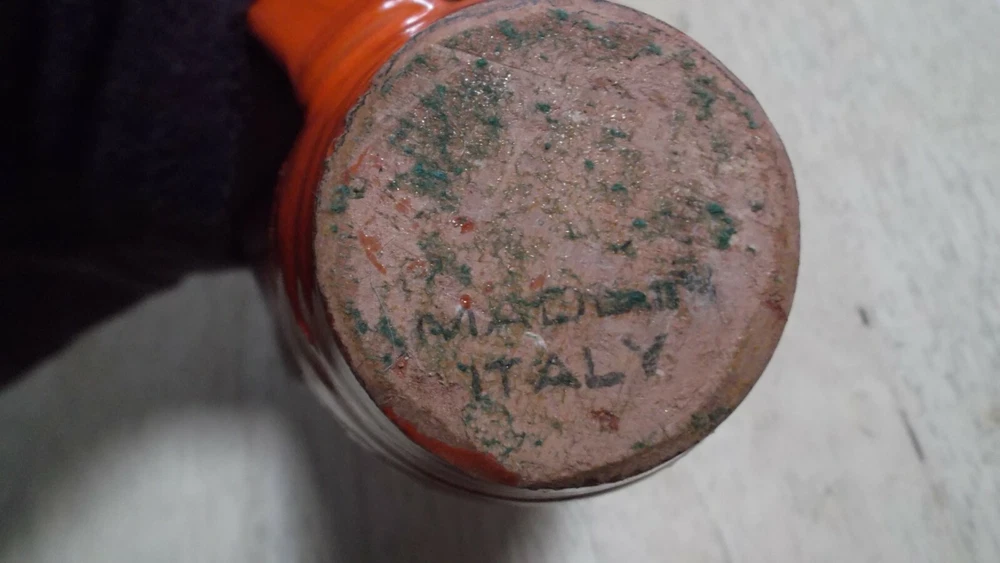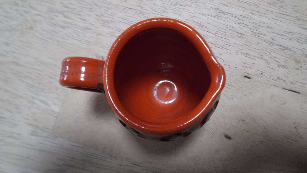 Vintage Italian Ceramic Creamer - 3 1/4" Mini Pitcher -Orange/Black - Made in Italy Nice Mid Century piece. Stamped made in Italy on bottom. Small chip on top side lip (can hardly be seen) office