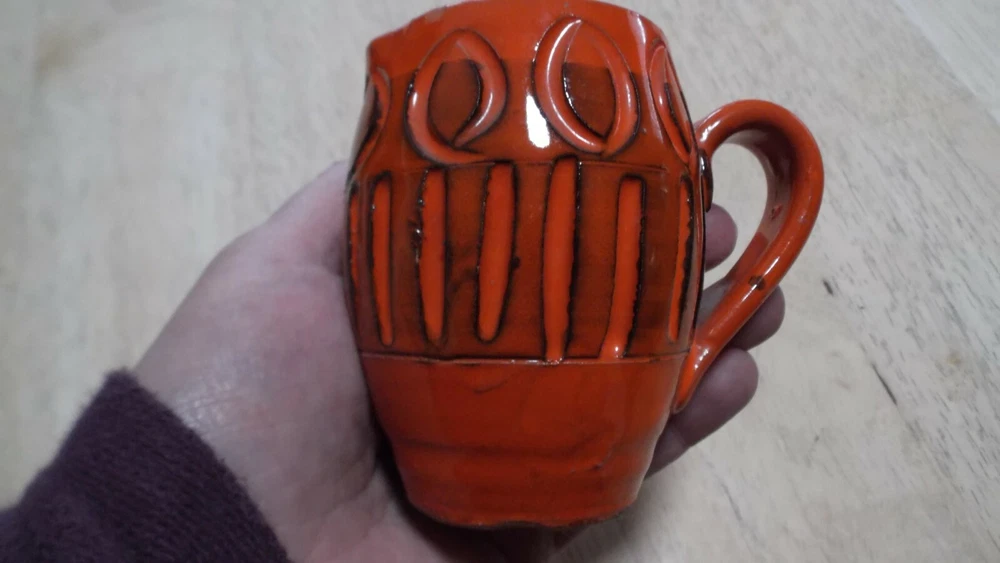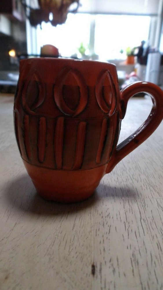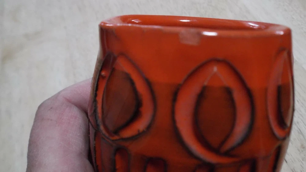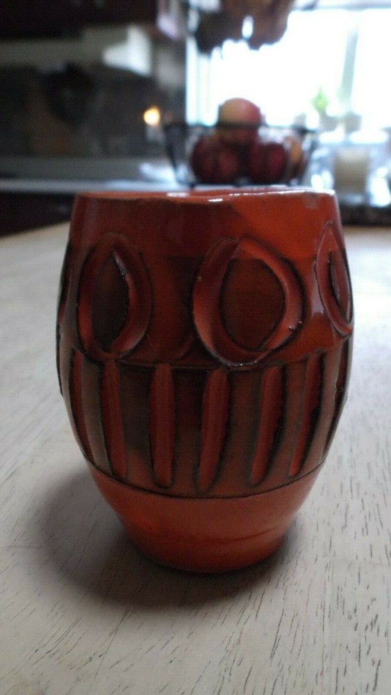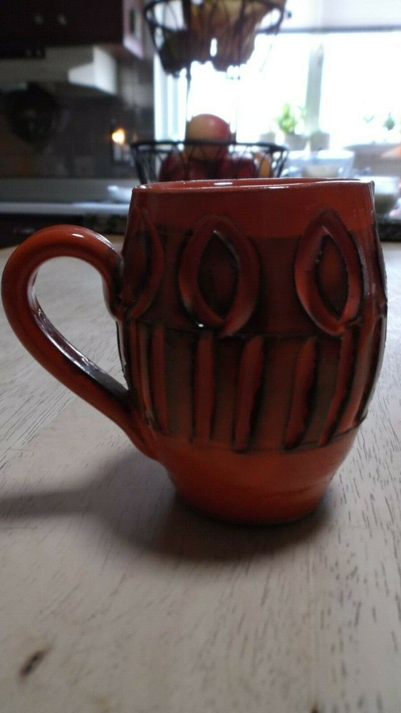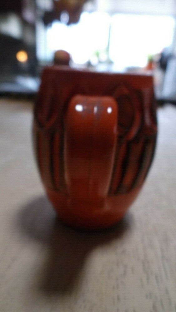Vintage Italian Ceramic Creamer - 3 1/4" Mini Pitcher -Orange/Black - Made in Italy Nice Mid Century piece. Stamped made in Italy on bottom. Small chip on top side lip (can hardly be seen) office...