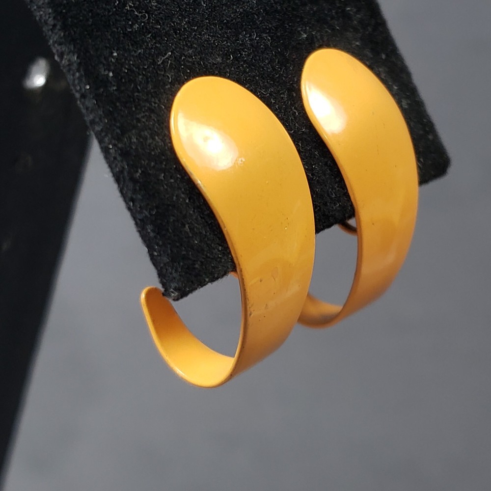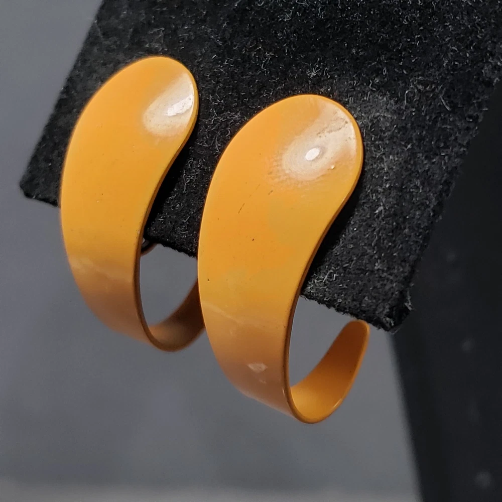 Up for sale is a set of J hoop earrings. They are orange in color . They are in good pre owned condition! Please view all posted pictures as they are part of the description. If you have any questions please ask. Please check out my store for more great deals that are listed every day!!
