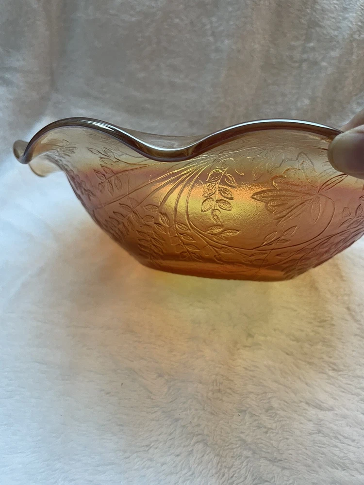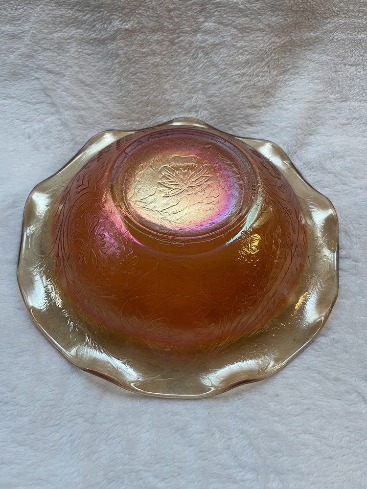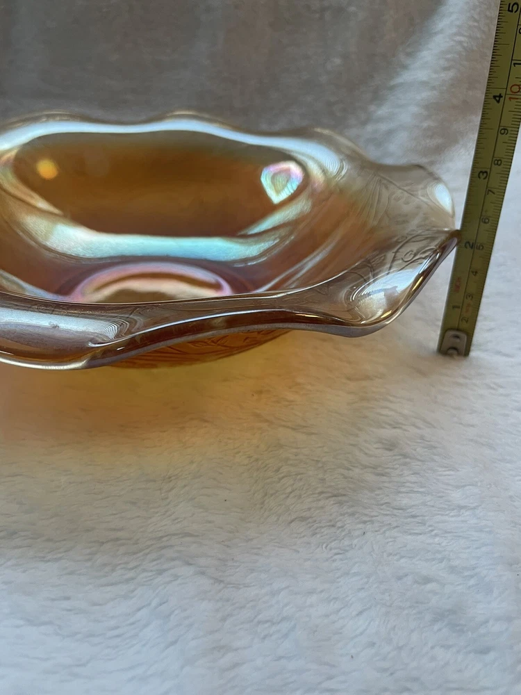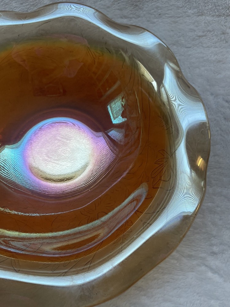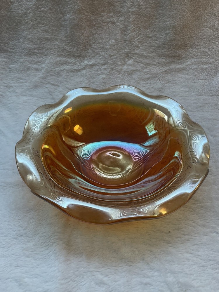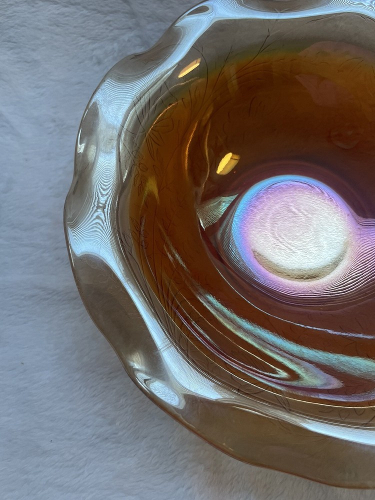 Vintage Jeannette Floragold Marigold Carnival Glass Bowl - Ruffled Leaf Design Preloved and in great condition!...