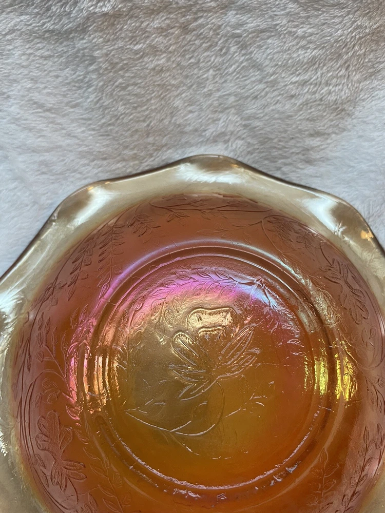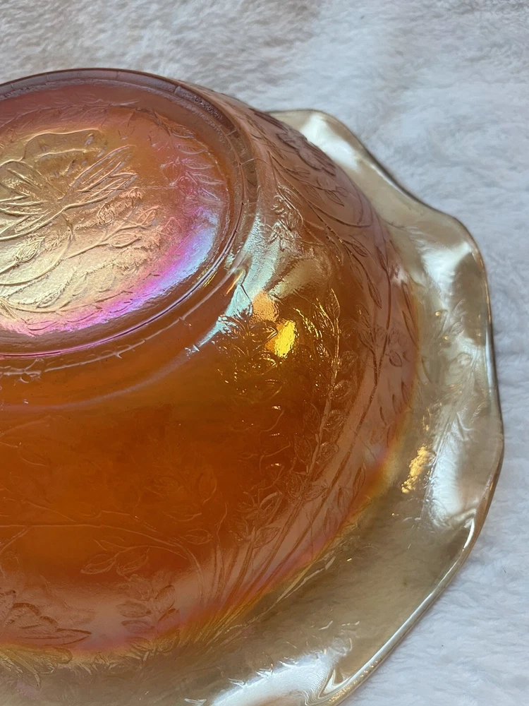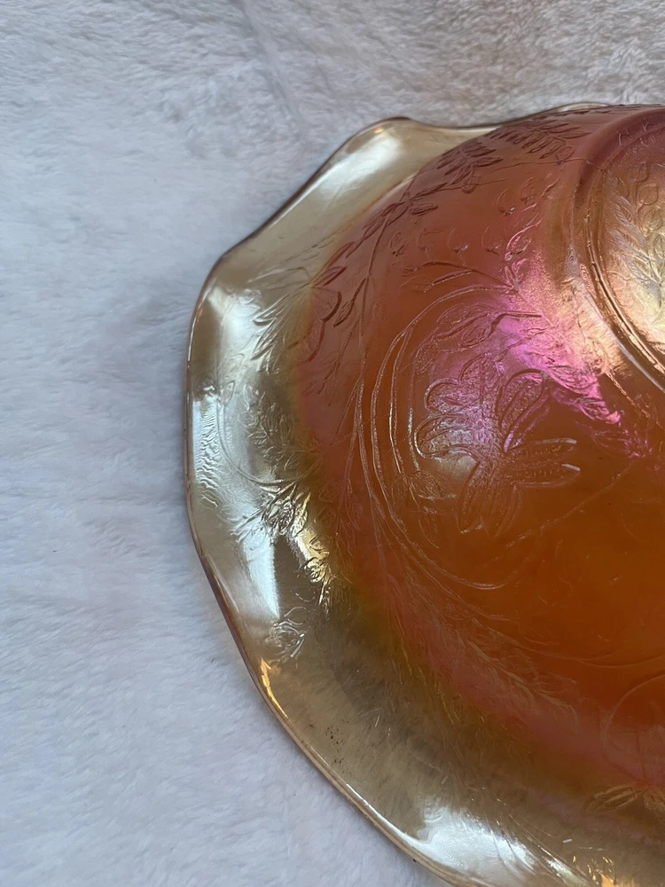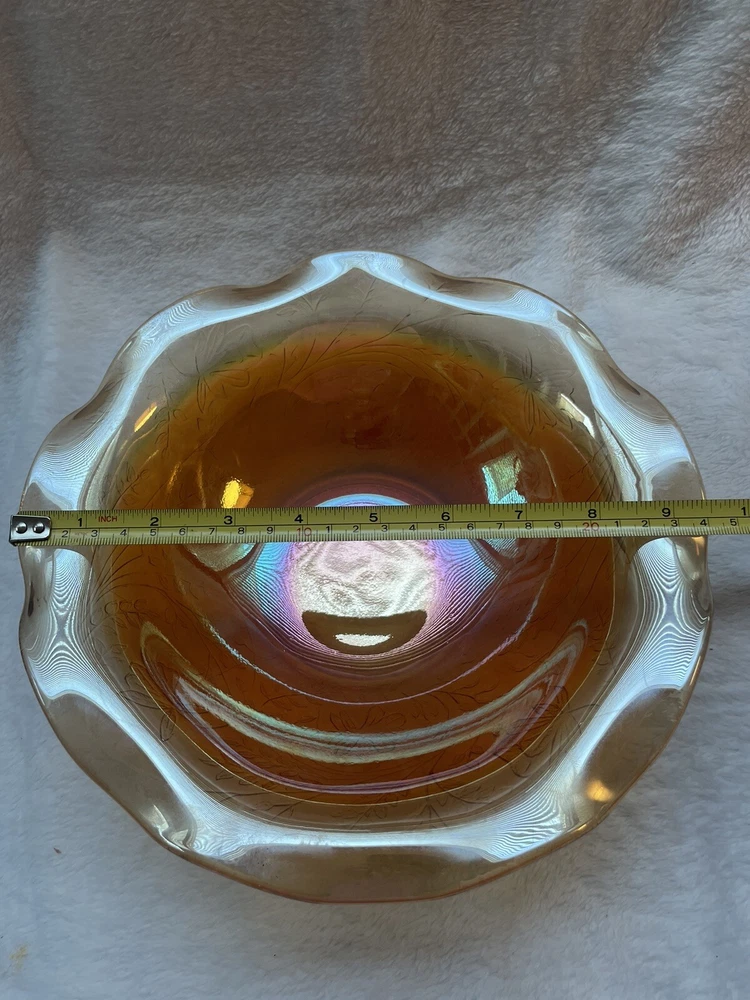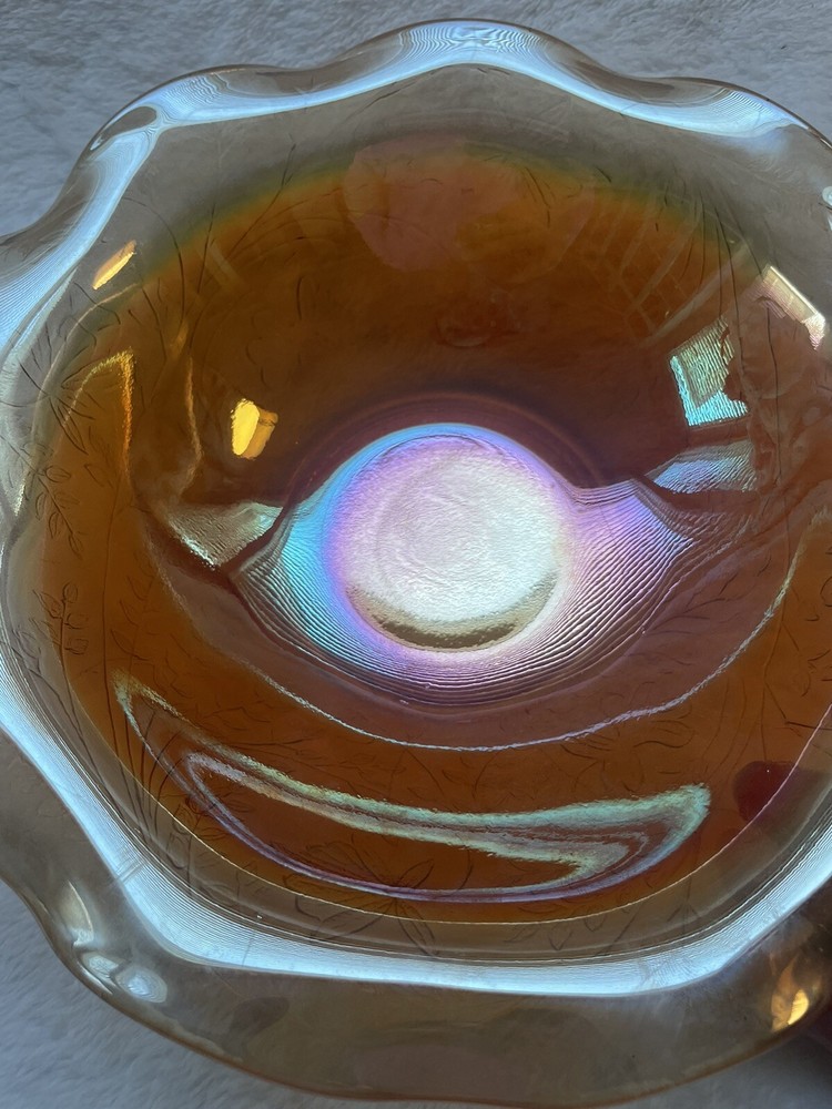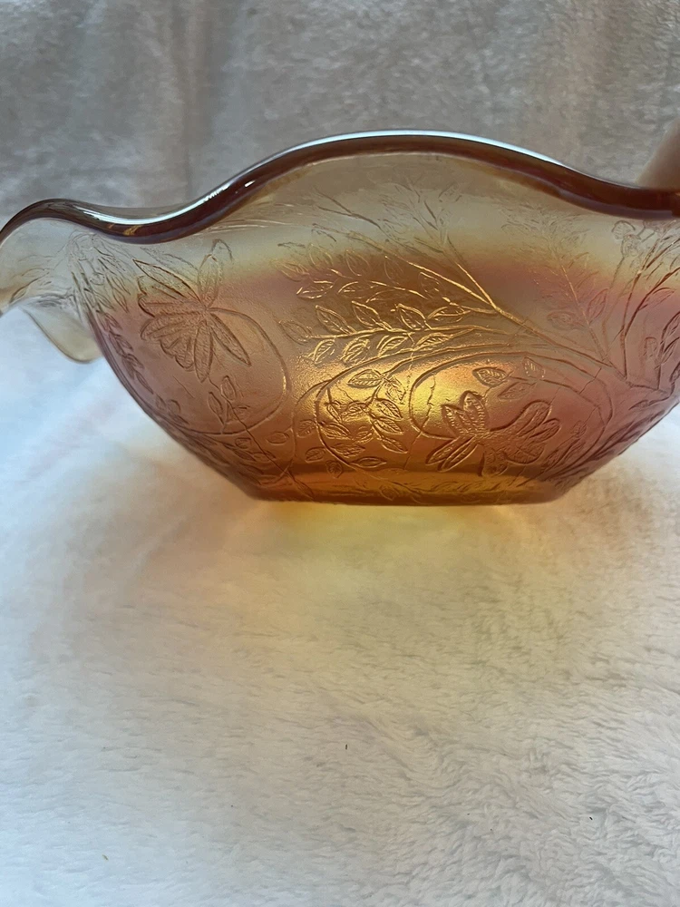 Vintage Jeannette Floragold Marigold Carnival Glass Bowl - Ruffled Leaf Design Preloved and in great condition!...