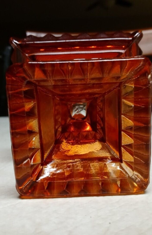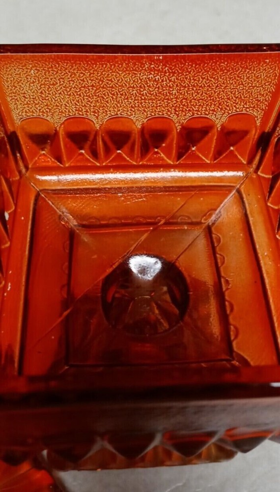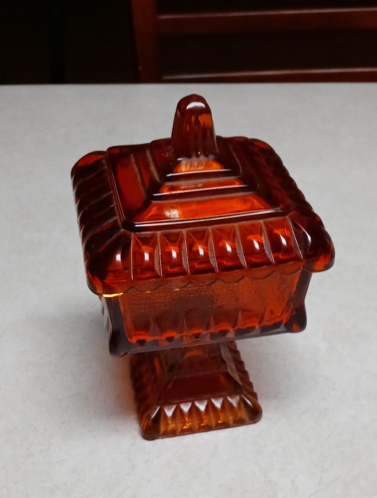 This stunning vintage Reddish - Orange Jeanette Brand Glass Compote Dish was originally manufactured in the 1960s, and was obtained by family around the same time. It is 3 1/2" in. in diameter, and stands at 4 3/4" tall. Originally used as a candy dish, but can be used for much more! Faded in color in some places, and appears to have been painted after manufacture, as there is one spot where paint appears to have been wiped off, or taken off by adhesive, perhaps tape?