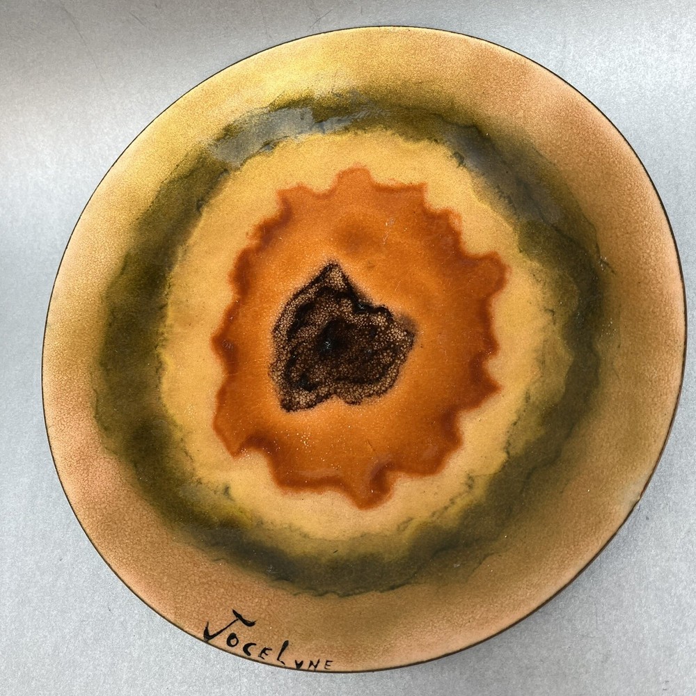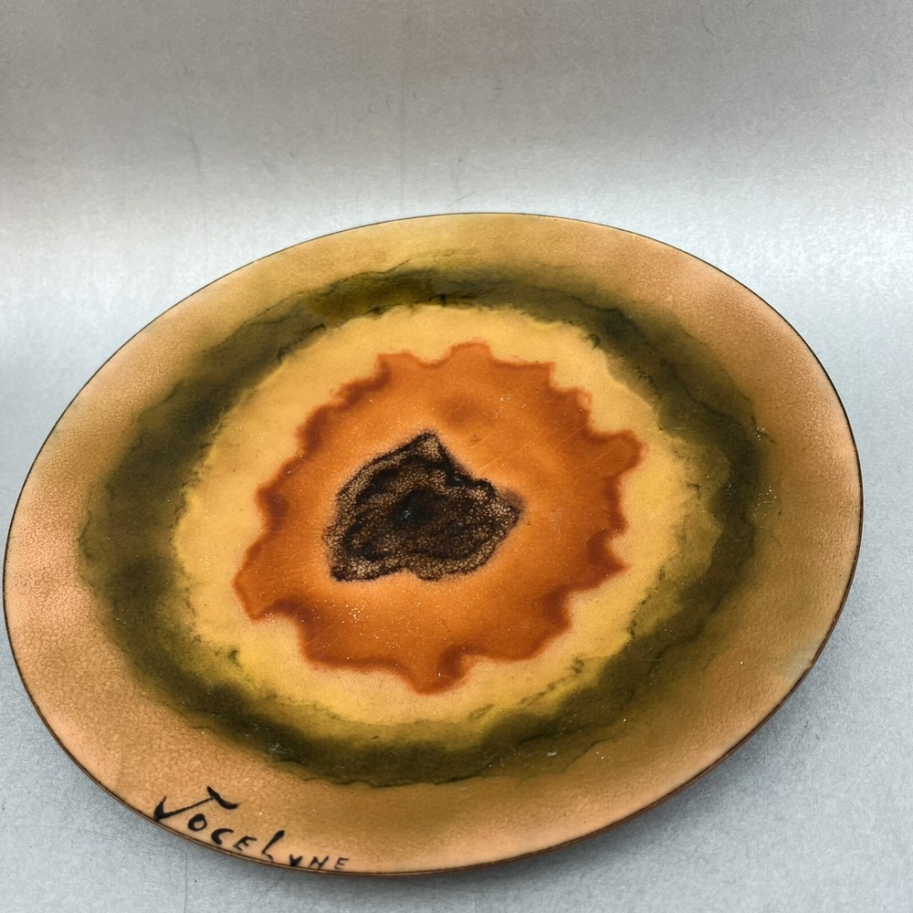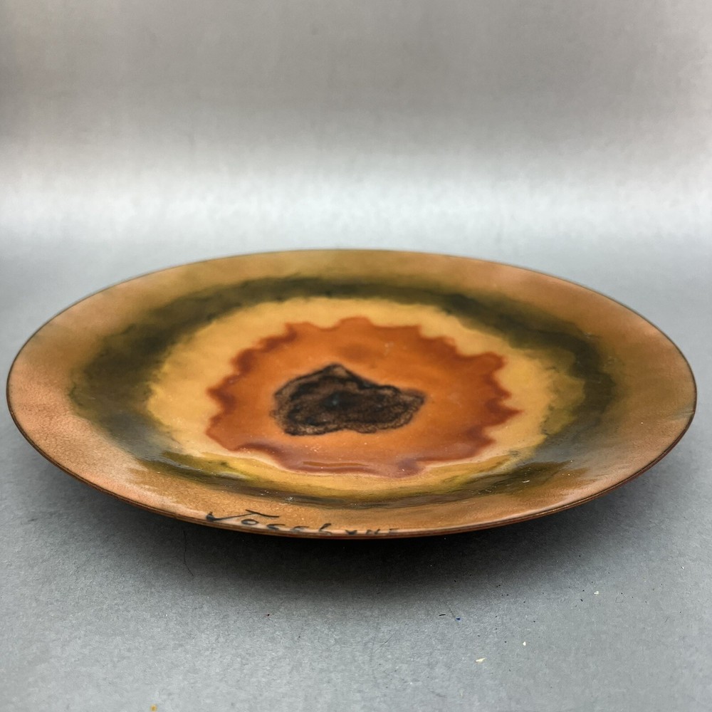 This is a distinctive and uniquely mid century art form. It is the enamel finish on this solid, copper body. It makes these pieces so dramatic and unique. This is a shallow bowl or deep plate done in this spectacular colour combination. It is a signed work, and it remains in excellent condition with no chips or damage. Measures about 9 inches across. Please have a look at all of the photos and thank you for your consideration. I have many other beautiful things posted here and I’m always happy to combine shipping whenever possible. Thanks for having a look! Shipping quoted is for the lower 48 states if you use a PO Box, APO or live anywhere else in the world please contact me directly for the shipping quotation. Canadian shipping exempts remote locations, if you are in question if this applies please contact me. I do everything in my power to insure that your purchase gets to you safely. If it should be damaged in shipping please remember to keep the packaging as well as the item. Contact me directly with photographs of both the item and packaging materials. No insurance claim can be submitted without these documents. I will handle the insurance claim and look after refunding your purchase price.