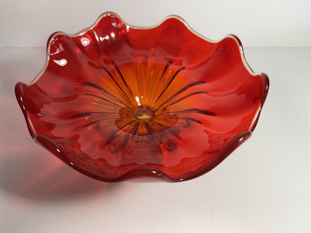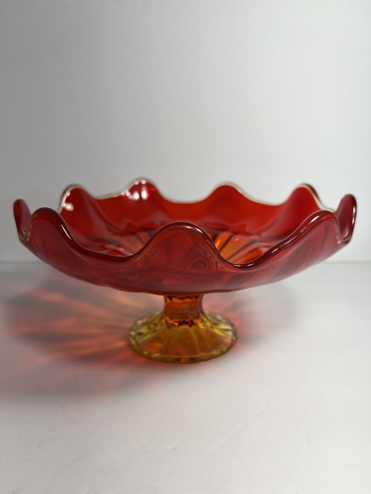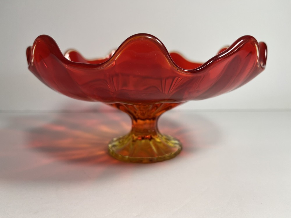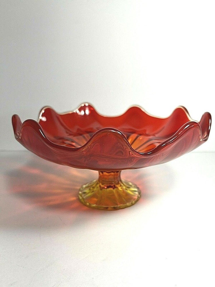 Vintage 1960s ORANGE-PERSIMMON L.E. SMITH GLASS 9 PETAL ~~OPEN COMPOTE~~ FOOTED Measures Approximately: 7.75" At Widest X 4" Tall Condition: Excellent Condition No Damage Of Any Kind Present Very Pretty Orange Glass Is Delightful If You Desire Additional Photos Or Have A Question We Are Always Ready To Assist Thank You For Looking!