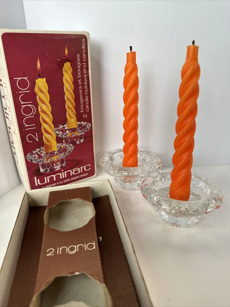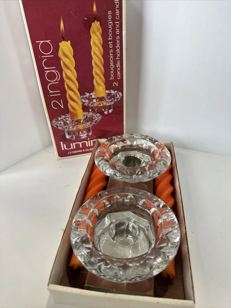 | Features | Decorative, Art Glass Design, Boxed, Dinner Candle Holders Pair Boxed, Made in France, Never Used, Rare Vintage |