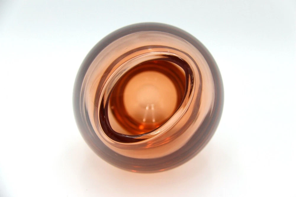 Vintage late 20th century dark orange hand blown glass vase. Good condition with no cracks, small chip on base, general wear consisted with age. Please refer to photographs for visual condition and check item specifics for more information about item. Measurements are approx. 12cm x 17.5cm. Can combine shipping on multiple purchases, request invoice first before paying for adjusted shipping cost. Please do not hesitate to contact me if you have any questions. Buyers please note that all items are carefully washed, cleaned, wiped or polished prior to photographing and from a smoke free home.