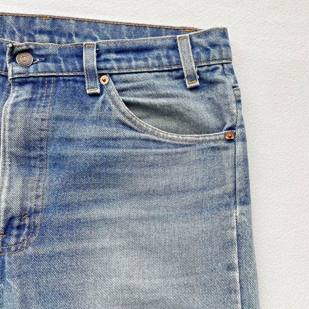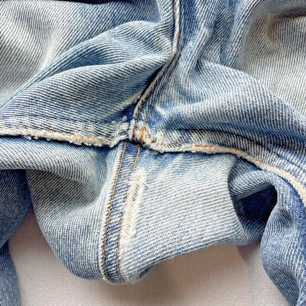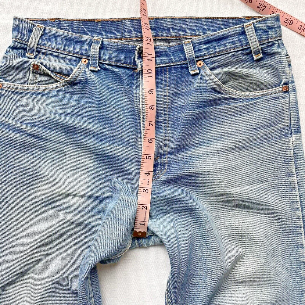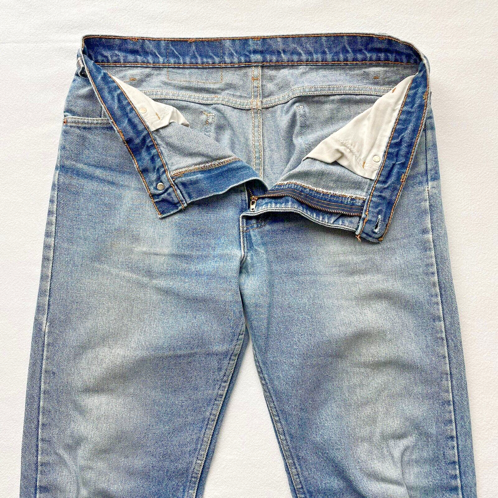 Vintage 1993 made in USA Levi’s 505. Relaxed straight- Beautiful fading and distressing. There are some small rips on knee and a tear forming in the crotch area. Lots of cool fading. Soft fabric from years of wear. See photos for details. Jeans fit size 33x28.5 See photos for details and measurements, or feel free to reach out directly if you have any questions or concerns. Will ship on next business day.