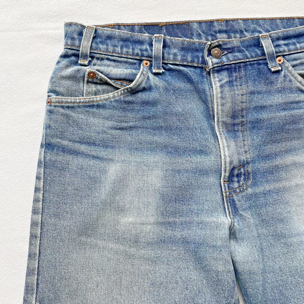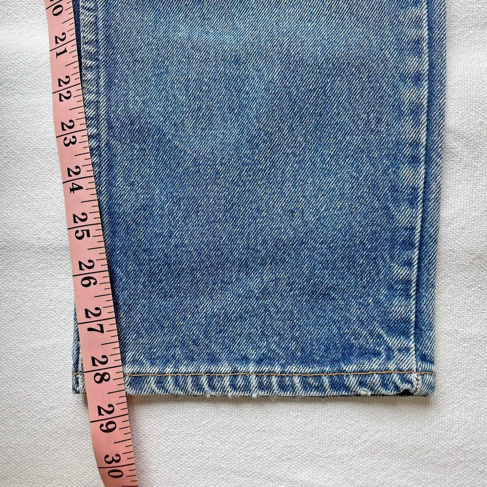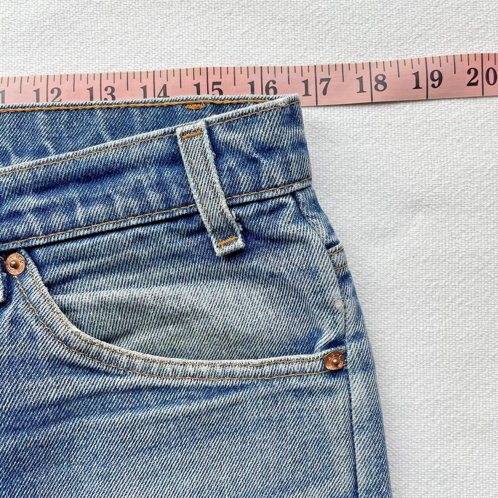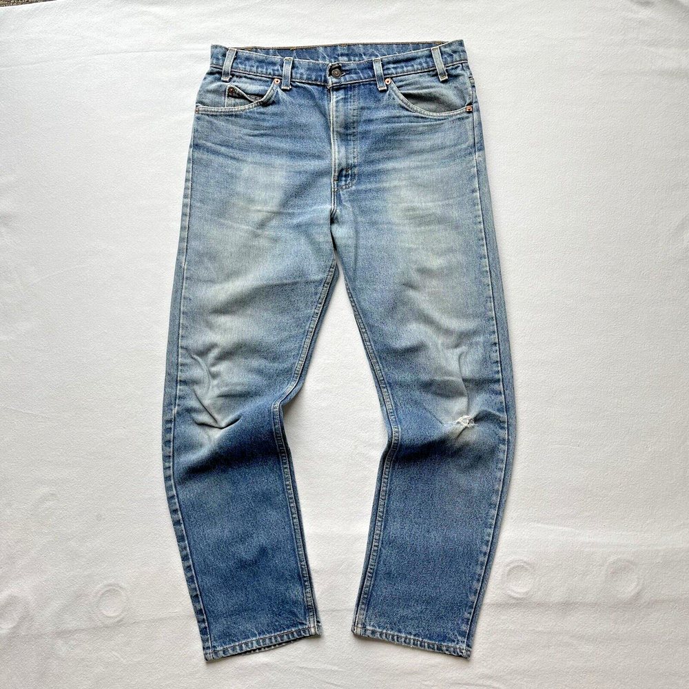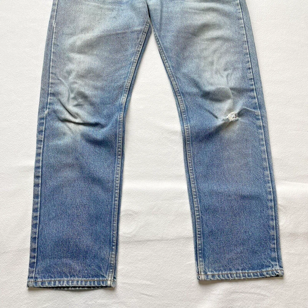 Vintage 1993 made in USA Levi’s 505. Relaxed straight- Beautiful fading and distressing. There are some small rips on knee and a tear forming in the crotch area. Lots of cool fading. Soft fabric from years of wear. See photos for details. Jeans fit size 33x28.5 See photos for details and measurements, or feel free to reach out directly if you have any questions or concerns. Will ship on next business day.