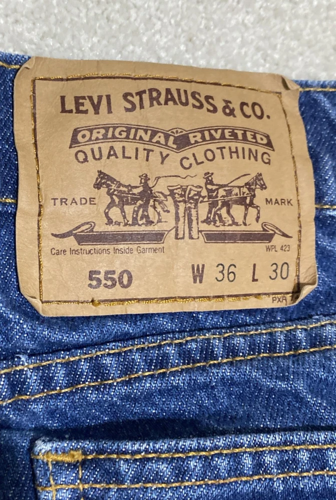 Vintage Levis 550 Jeans Mens 36x30 Orange Tab Straight Leg Red Batwing Assembled in Mexico 10/1998 Excellent Condition! Light Fade of Course. Excellent for their Age Certainly!! Exact Measure 34.5” x ...