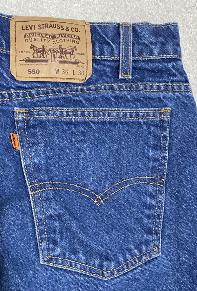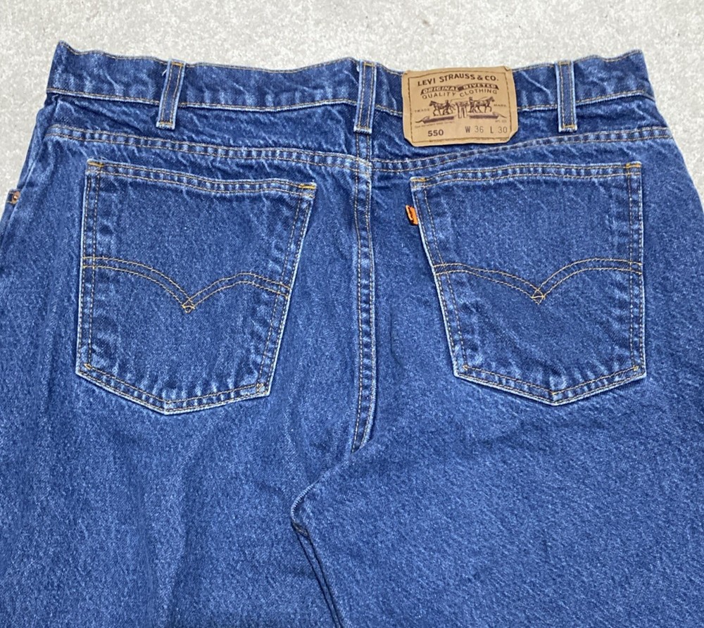 Vintage Levis 550 Jeans Mens 36x30 Orange Tab Straight Leg Red Batwing Assembled in Mexico 10/1998 Excellent Condition! Light Fade of Course. Excellent for their Age Certainly!! Exact Measure 34.5” x 29.5” with 12.5” Rise