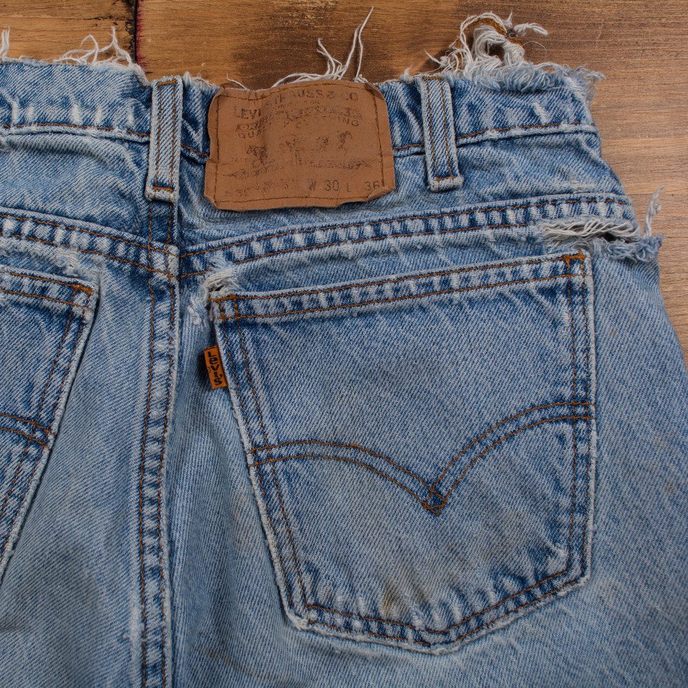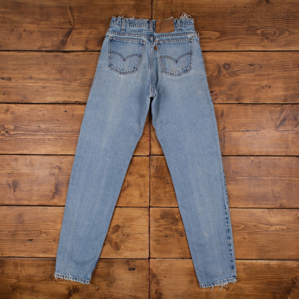 - Official eBay Store ALL PRODUCTS MENS VINTAGE WOMENS VINTAGE Vintage Levis 550 Jeans 29 x 35 Stonewash Tapered Blue Orange Tab Denim Description The original label states 30 x 36 but they’ve shrunk a little at the waist and leg and now measure 29 x 35. Wear : Well Worn condition. Please see photos for detail. Waist laid flat: 14.5" Inside leg: 35" Rise: 10.5" Thigh (measured from crotch to outside of leg): 12" Hips (measured across the bottom of the fly): 21" Width of hem: 6" Item has been professionally washed, dried and pressed. Ready to wear! Unless stated as new, all our items are vintage/worn and may show signs of previous wear. Any significant wear, damage or marks will be photographed. Please inspect photos carefully. DELIVERY RETURNS CONTACT US Standard delivery to UK mainland is FREE. Delivery is via Royal Mail and typically your parcel will arrive with you in 3-5 working days. We offer 1st class Royal Mail delivery and next day courier services on all items for an additional cost. Just select the delivery option required at checkout. We aim to ship all orders within one working day of receiving your order. Cost of delivery for international orders varies pending on size and weight of the item. Typically, international orders will arrive 5-10 working days after ordering, depending on destination. DELIVERY Holdwest operate a 30 day returns policy. You may return your item within 30 days of receiving it and you will receive a full refund. There will be returns information in your parcel when you receive your item with full details of the returns procedure. Any further questions about returns can be answered by us. Just contact us through eBay messages. Please note, we do not offer exchanges. If you want a different size, you would simply return the original item to us for a full refund and then purchase a new item through our listings. Please read the full item description and inspect all photographs, as we provide plenty of item details for you. If you have any further questions, please contact us via eBay messages by clicking here . If you have any further questions, please only contact us via eBay messages All messages will be answered during office hours Monday – Friday 10am – 5pm. Messages are not checked at the weekend. Due to eBay policy and we cannot accept enquiries by phone. © 2018 Copyright Holdwest