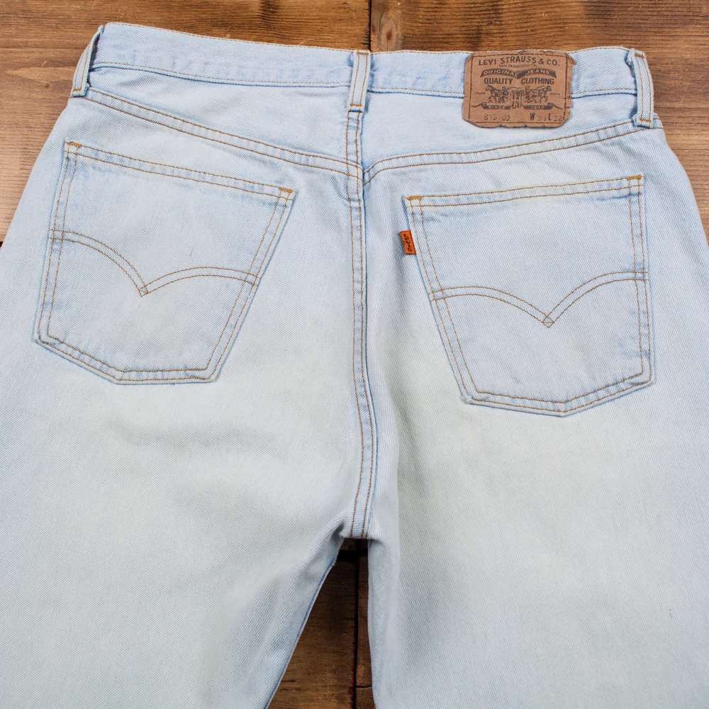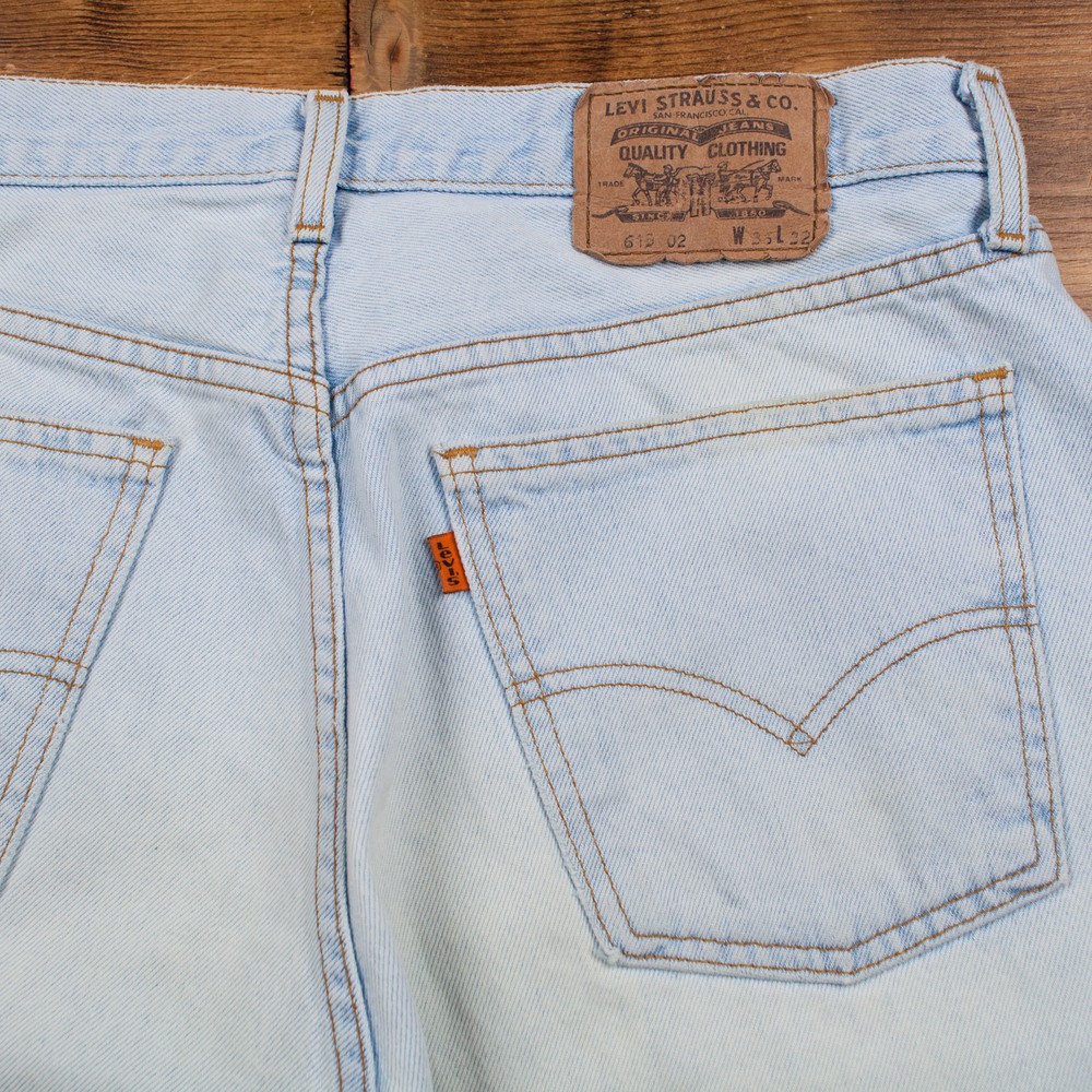 - Official eBay Store ALL PRODUCTS MENS VINTAGE WOMENS VINTAGE Vintage Levis 615 Jeans 35 x 30 Light Wash Straight Blue Orange Tab Denim Description The original label states 36 x 32 but they’ve shrunk a little at the waist and been taken up at the hem and now measure 35 x 30. Wear : Good condition. Please see photos for detail. Waist laid flat: 17.5" Inside leg: 30" Rise: 12.5" Thigh (measured from crotch to outside of leg): 13.5" Hips (measured across the bottom of the fly): 23" Width of hem: 7.5" Item has been professionally washed, dried and pressed. Ready to wear! Unless stated as new, all our items are vintage/worn and may show signs of previous wear. Any significant wear, damage or marks will be photographed. Please inspect photos carefully. DELIVERY RETURNS CONTACT US Standard delivery to UK mainland is FREE. Delivery is via Royal Mail and typically your parcel will arrive with you in 3-5 working days. We offer 1st class Royal Mail delivery and next day courier services on all items for an additional cost. Just select the delivery option required at checkout. We aim to ship all orders within one working day of receiving your order. Cost of delivery for international orders varies pending on size and weight of the item. Typically, international orders will arrive 5-10 working days after ordering, depending on destination. DELIVERY Holdwest operate a 30 day returns policy. You may return your item within 30 days of receiving it and you will receive a full refund. There will be returns information in your parcel when you receive your item with full details of the returns procedure. Any further questions about returns can be answered by us. Just contact us through eBay messages. Please note, we do not offer exchanges. If you want a different size, you would simply return the original item to us for a full refund and then purchase a new item through our listings. Please read the full item description and inspect all photographs, as we provide plenty of item details for you. If you have any further questions, please contact us via eBay messages by clicking here . If you have any further questions, please only contact us via eBay messages All messages will be answered during office hours Monday – Friday 10am – 5pm. Messages are not checked at the weekend. Due to eBay policy and we cannot accept enquiries by phone. © 2018 Copyright Holdwest