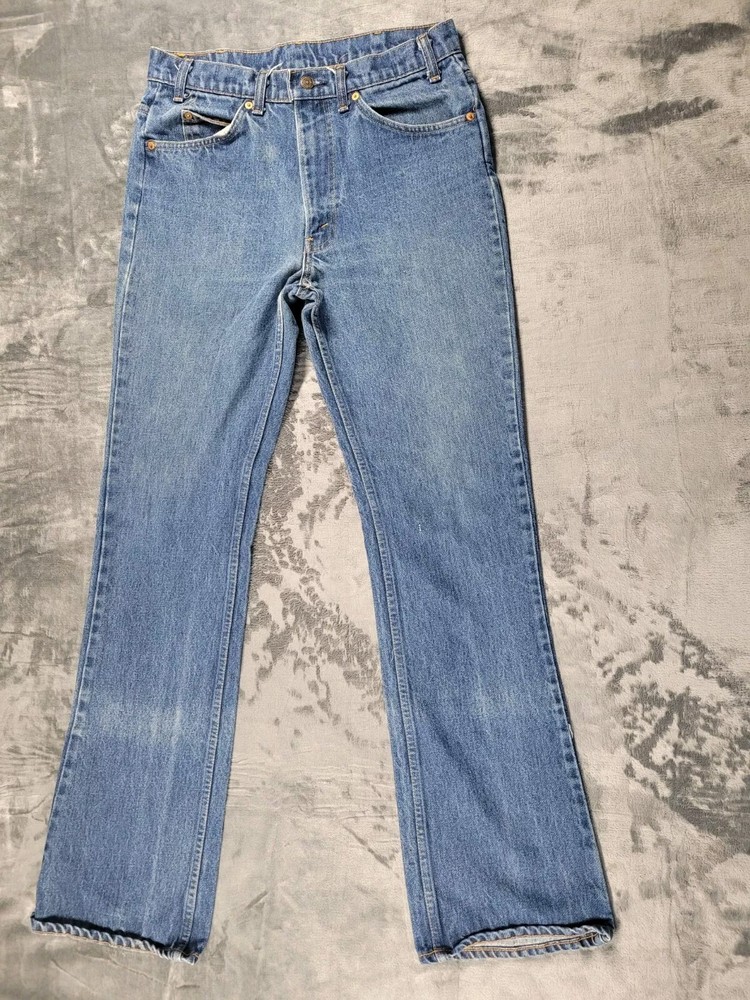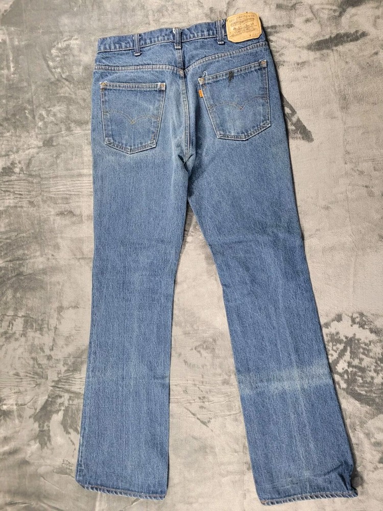 Vintage Levis Orange Tab Jeans Men's 34x35 Blue Wash Mid Rise Denim Stain. Condition is Pre-owned - Excellent. Shipped with USPS Ground Advantage....