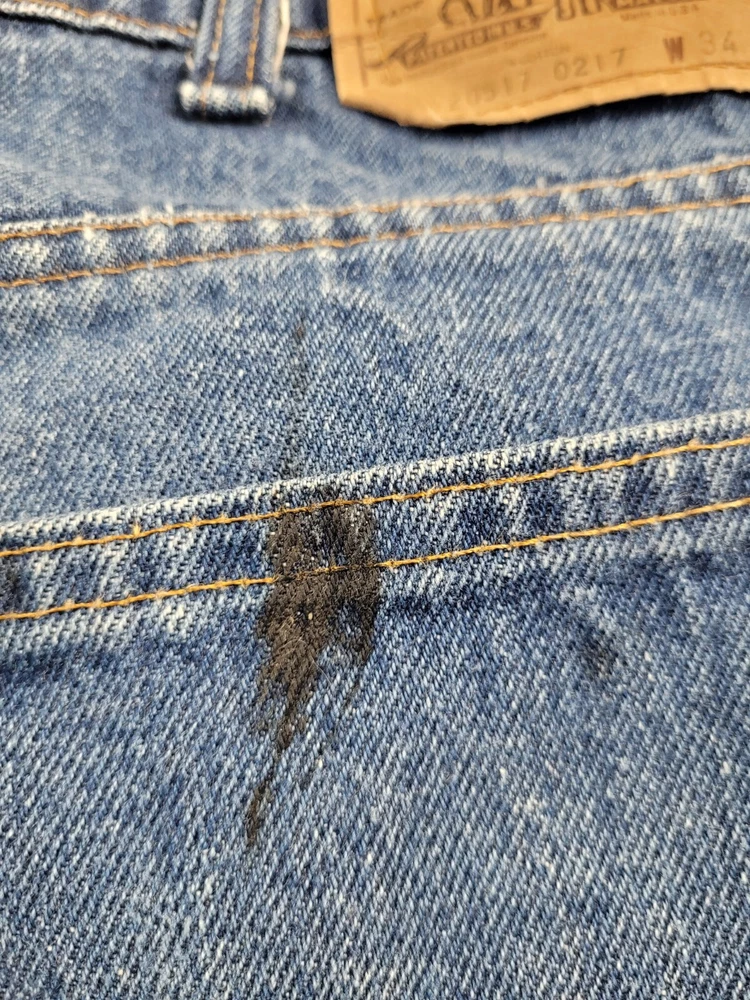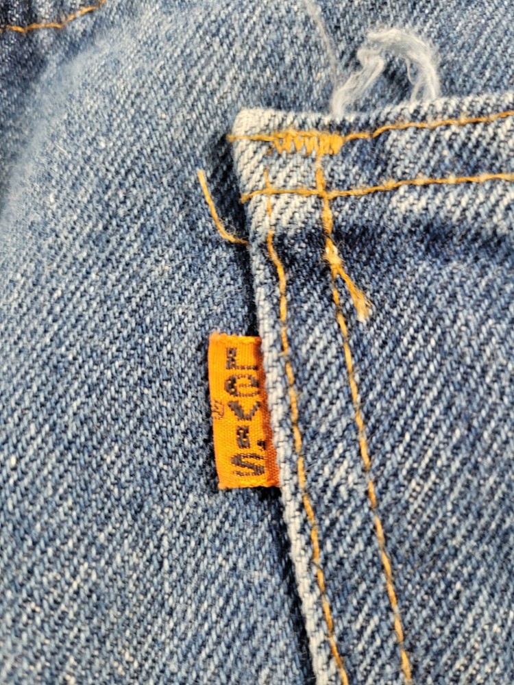 Vintage Levis Orange Tab Jeans Men's 34x35 Blue Wash Mid Rise Denim Stain. Condition is Pre-owned - Excellent. Shipped with USPS Ground Advantage.