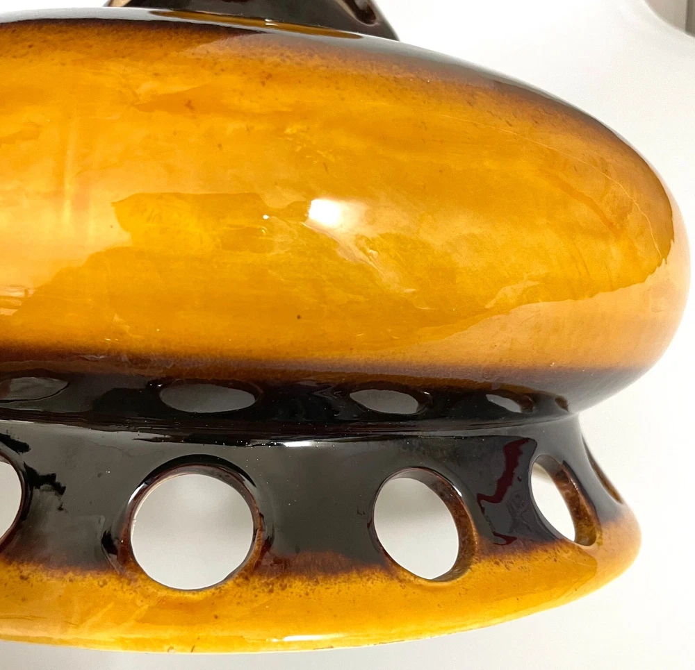 Vintage Light Shade Mid Century Mod Orange & Brown 1970s Flying Saucer Retro. Gorgeous large ceramic light shade in a flying saucer shape. there are circles in the bottom of the shade which throw patterns into the room. This is a shade ONLY. Please choose carefully as returns are not accepted on this item for change of mind. This item will be sent with tracking and signature on delivery. Please feel free to view my other listings. I am happy to combine postage so please message me if you have questions. PLEASE READ CAREFULLY BEFORE PURCHASING- All items are sold "as is" so it is imperative that you study the photos closely, read the descriptions and ask any questions you might have. Please email any questions you have about condition of my items prior to purchasing. Please remember if it is a vintage or used item, it will not be in perfect "like new" condition unless stated otherwise.