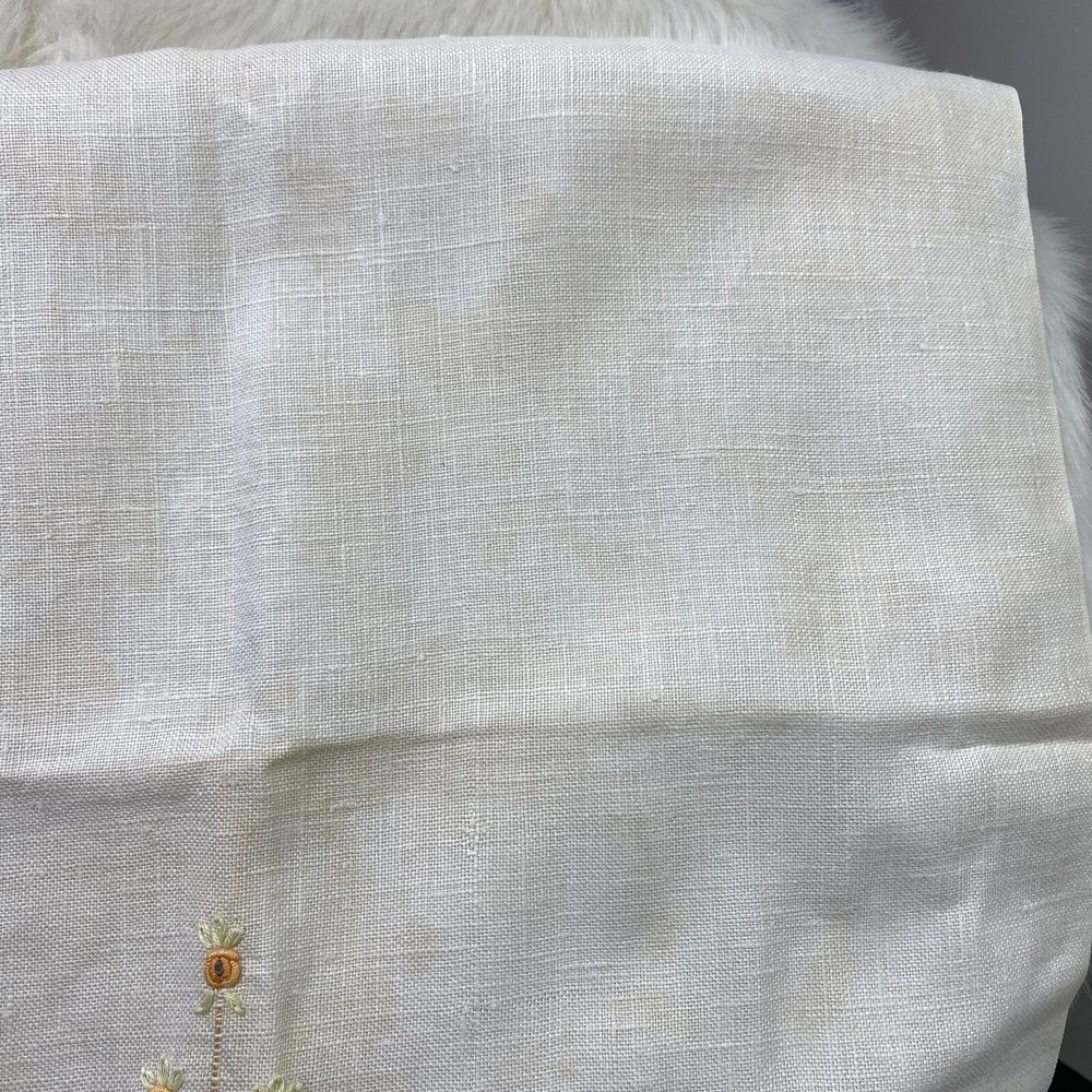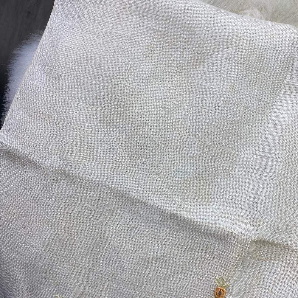 Vintage Linen Textile with Orange & Blue Embroidered Flowers 17.5" X 28.5" Minor wear. HD1-021...