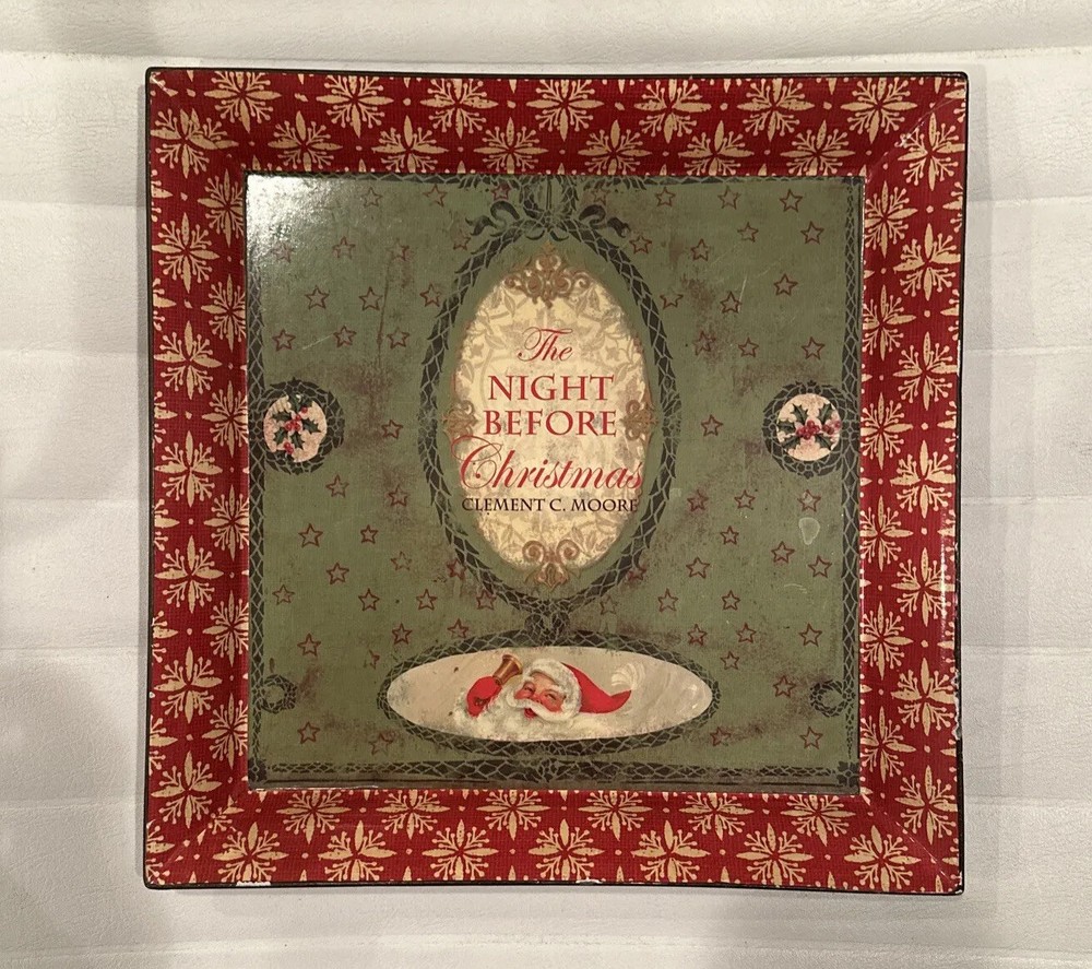 Vintage Lori Siebert Creative Co-Op Night Before Christmas Tray 10” x 1.25”. Clement C Moore’s famous Night Before Christmas is captured in this decorative tray. Condition is good.