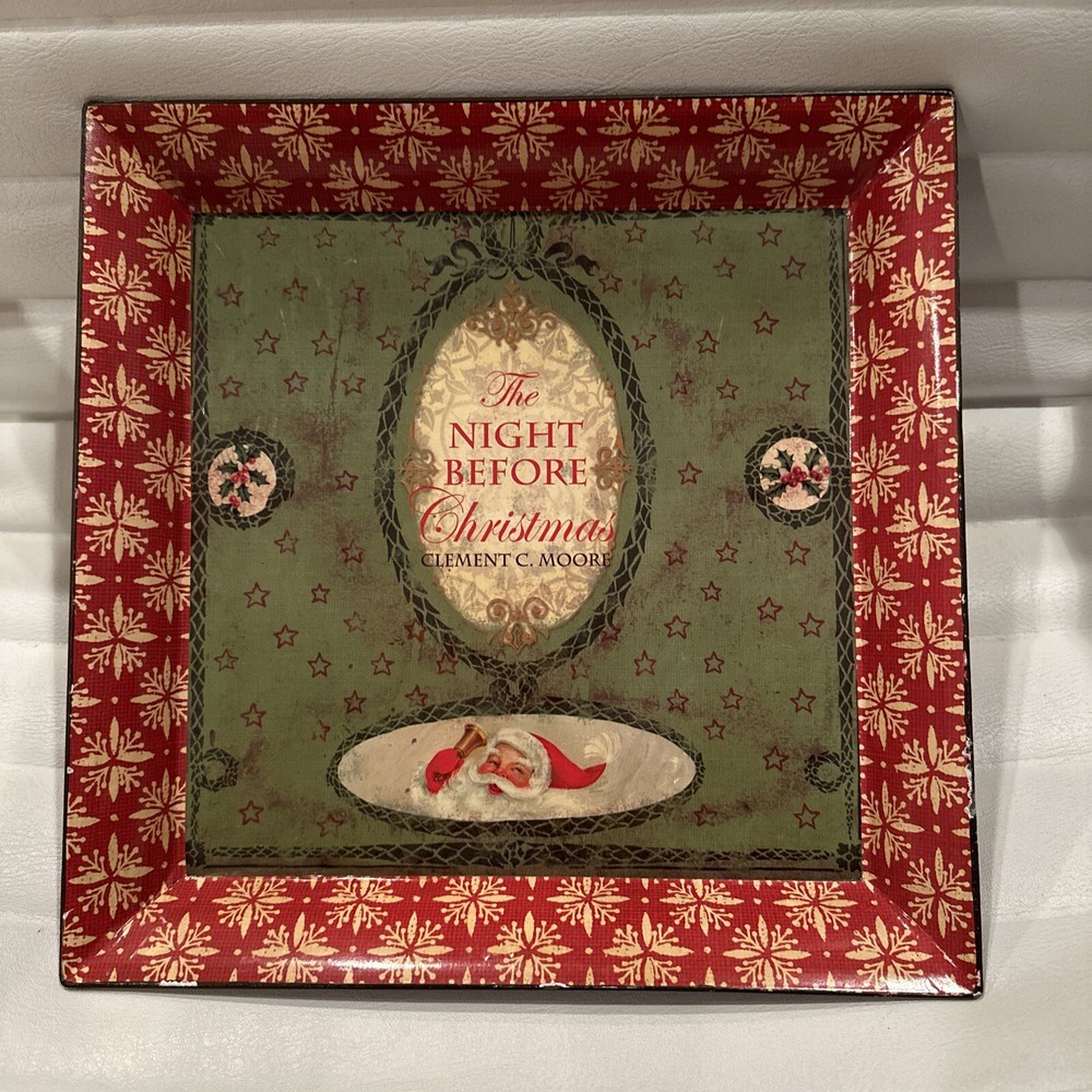 Vintage Lori Siebert Creative Co-Op Night Before Christmas Tray 10” x 1.25”. Clement C Moore’s famous Night Before Christmas is captured in this decorative tray. Condition is good....