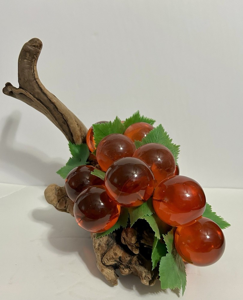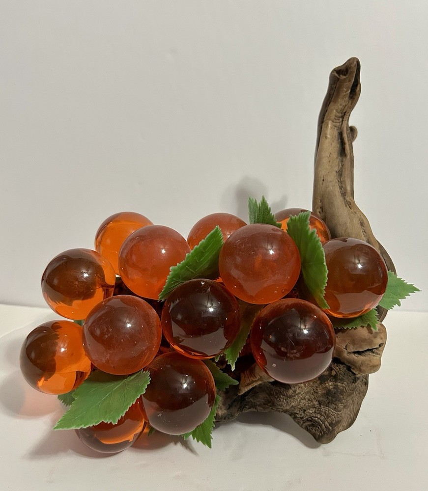 Vintage Lucite Grapes Orange Cluster on Driftwood Mid Century Modern Vine Leaves Great Condition! Ships Same Day Or Next! Comes From Pet Free, Smoke Free Home!...