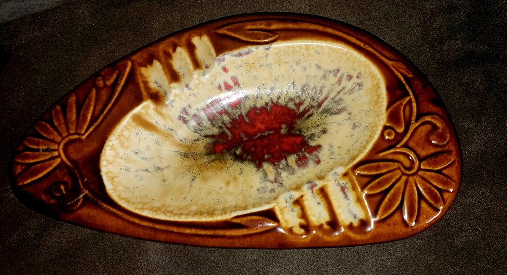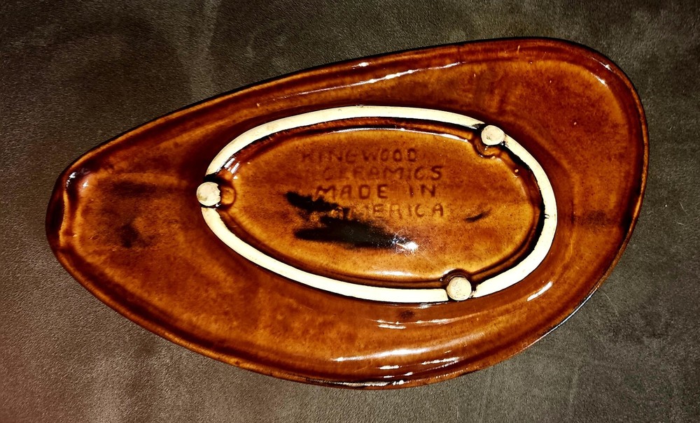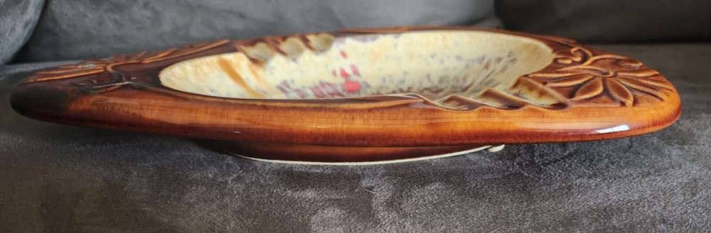Vintage MCM Ashtray Orange Yellow Brown Drip Glaze Art Pottery EUC Kingswood USA. In good condition with no chips cracks or repairs. Measures approximately 10" x 5 3/4" x 1 1/2" tall Please examine and enlarge photos prior to placing your bid Shipping for this item will be USPS Ground Advantage and will be shipped 1 business day after payment received. Payment would be appreciated within 2 days of your winning bid Thanks for looking and check out my other auctions