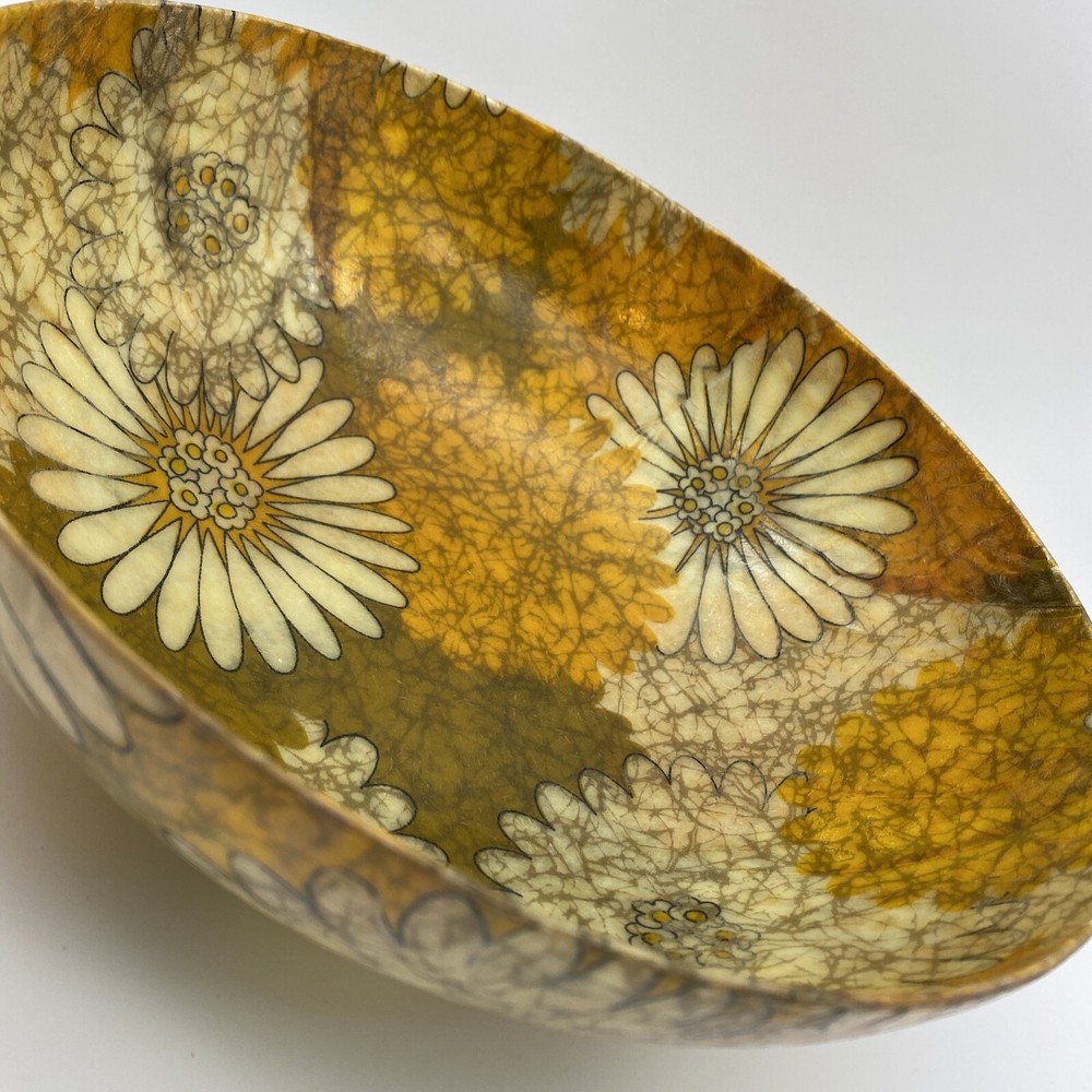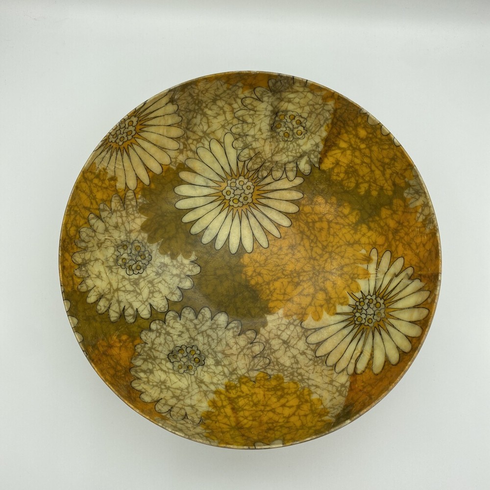 11" in diameter and 3.5" deep Not marked, but appears to be made by Traymold. Minor wear. Please be sure to look closely at all photos for details.