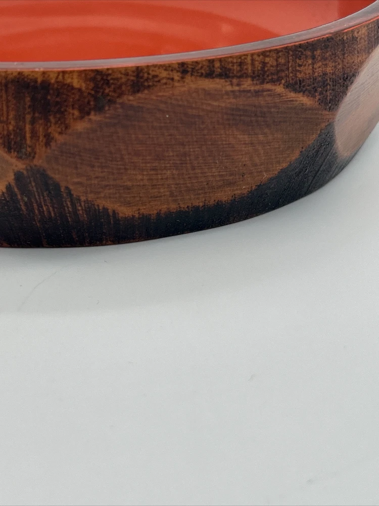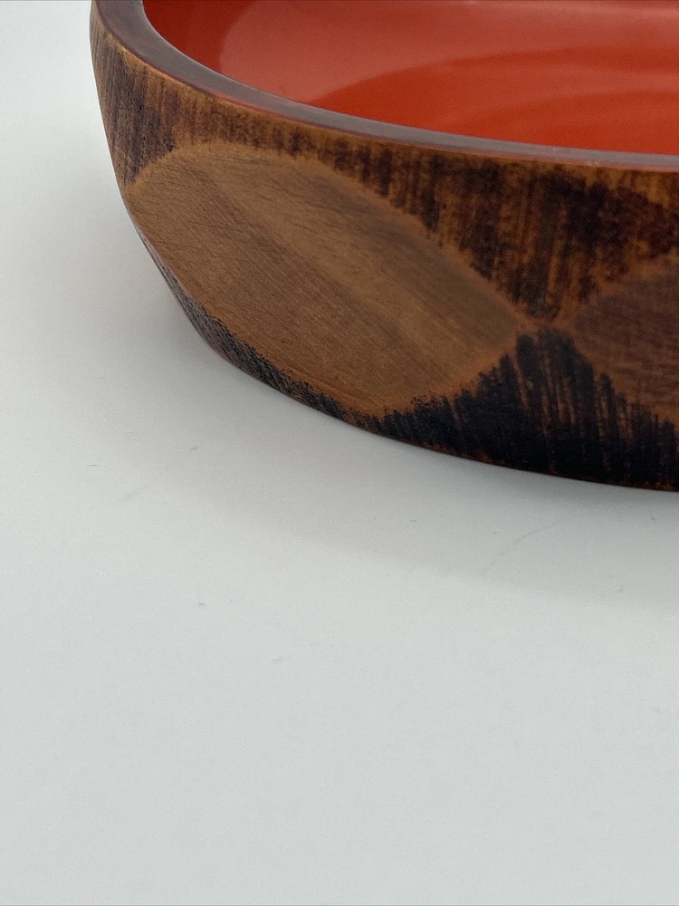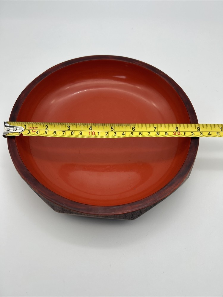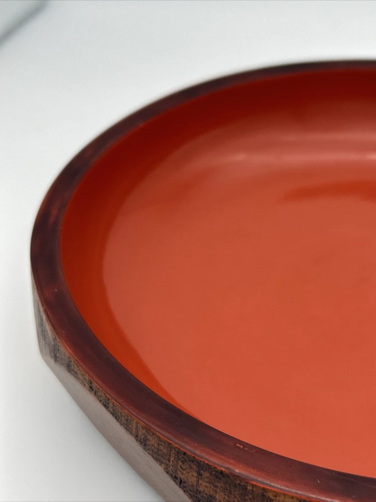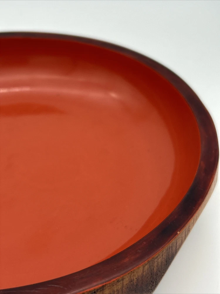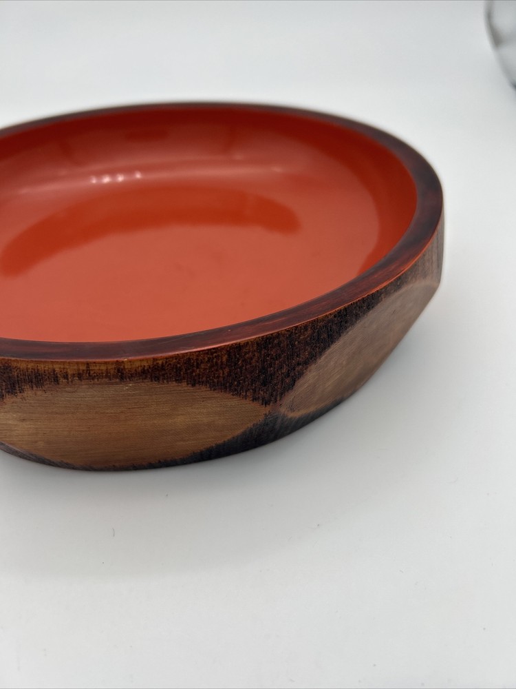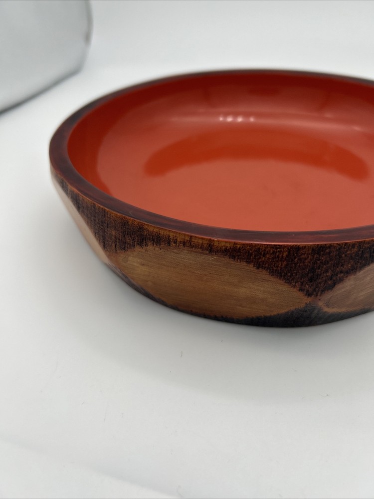 Vintage MCM Japanese Lacquerware Wooden Bowl - Deep Orange - 9”. Condition is Used. Shipped with USPS Ground Advantage.