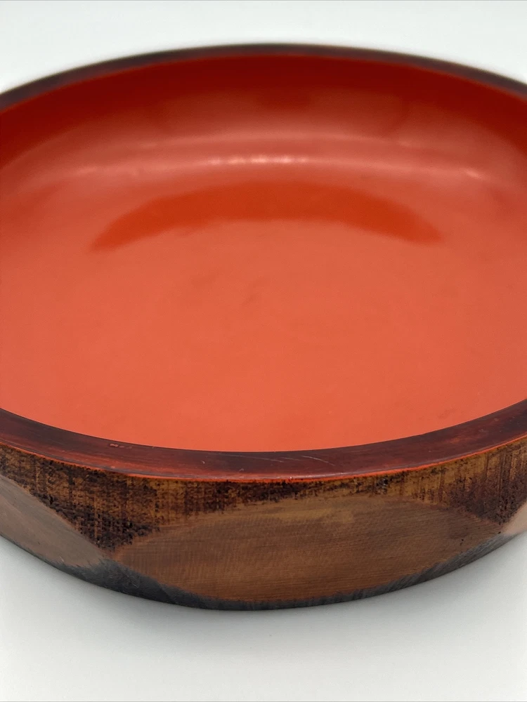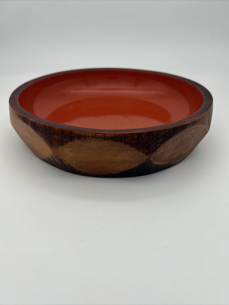 Vintage MCM Japanese Lacquerware Wooden Bowl - Deep Orange - 9”. Condition is Used. Shipped with USPS Ground Advantage....