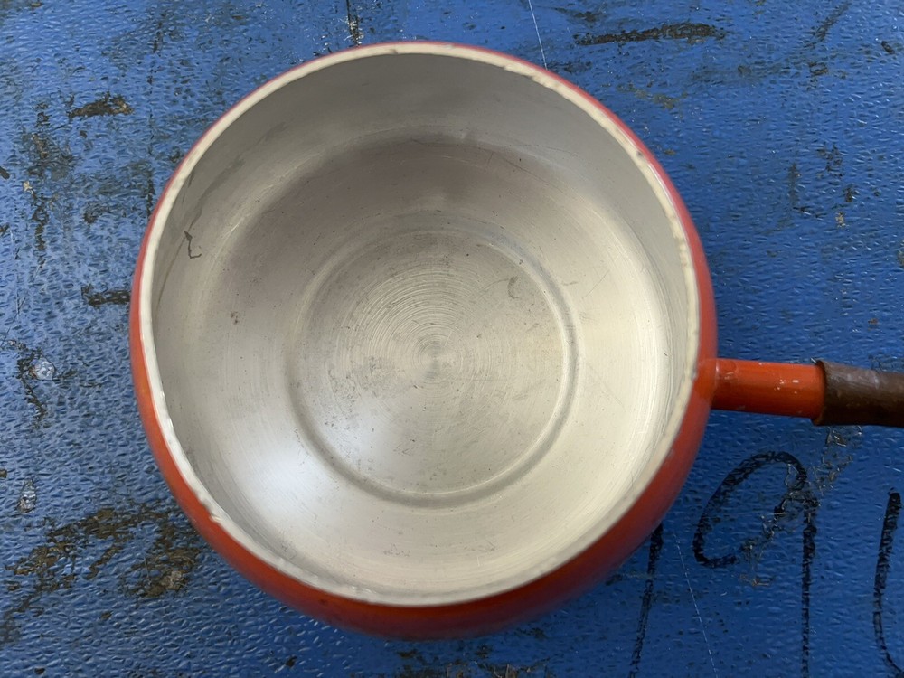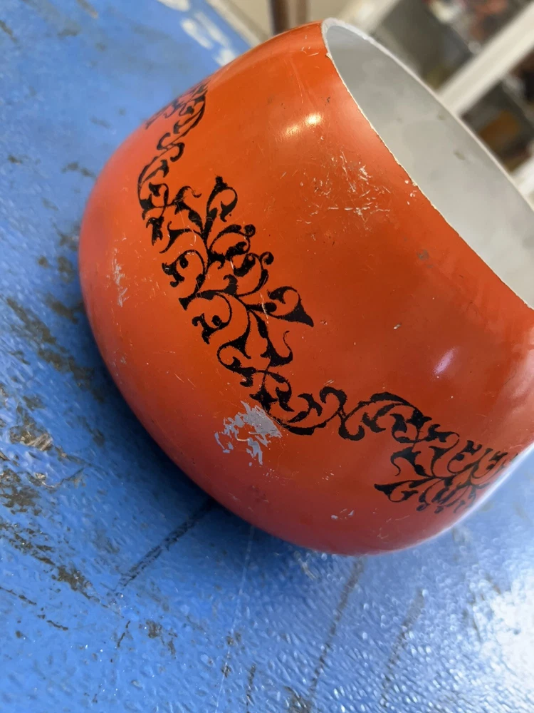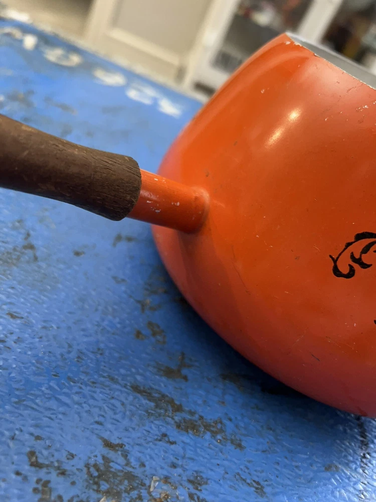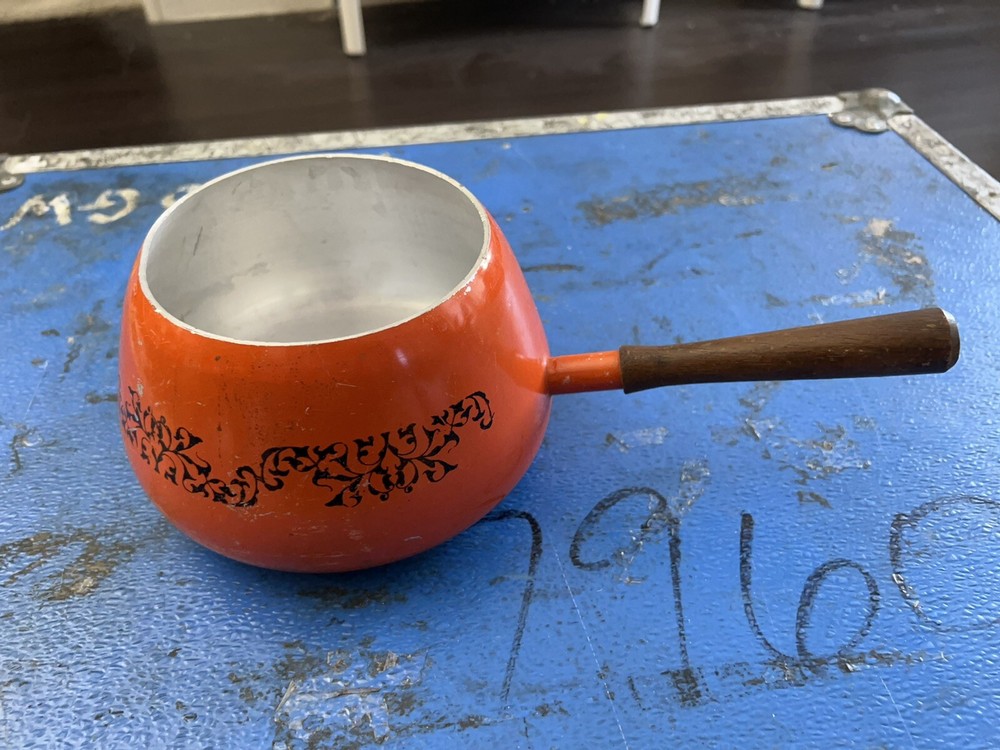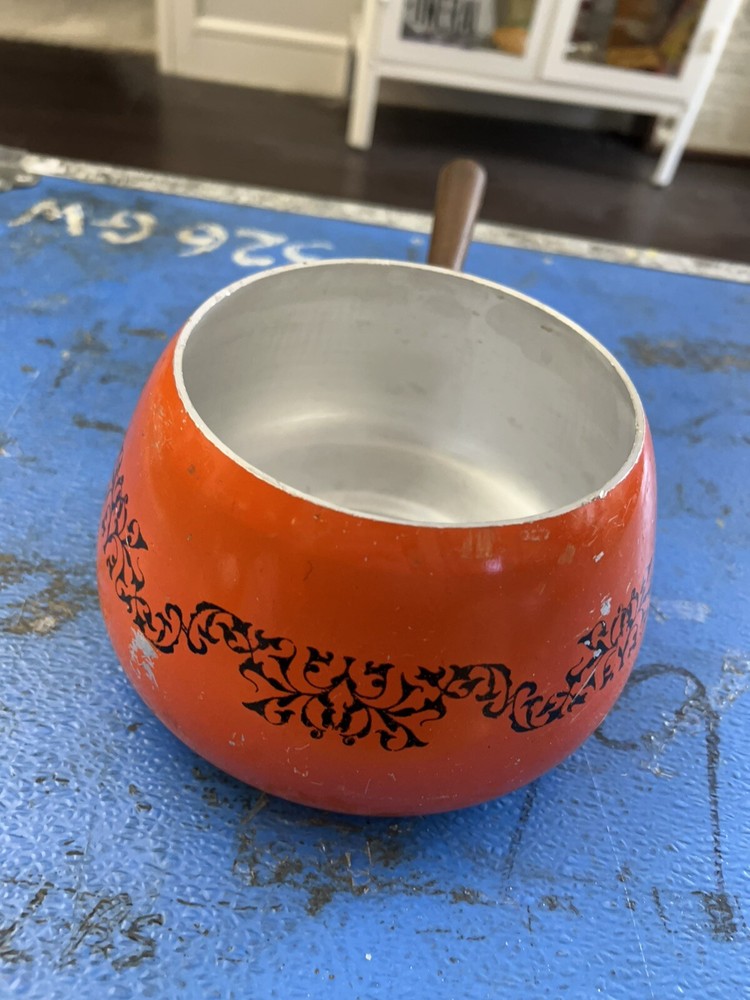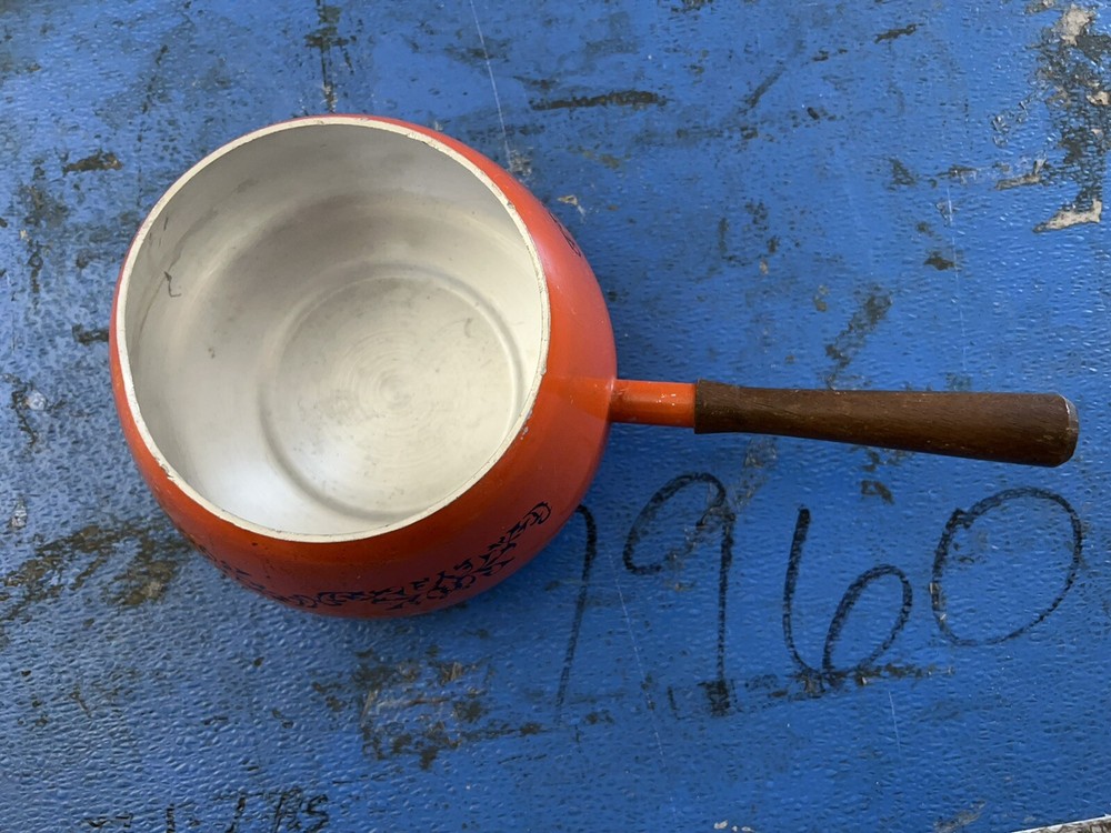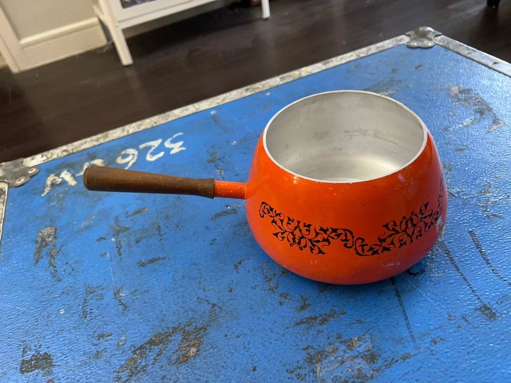 Vintage MCM Made in Japan Orange Fondue Pot. Pre-owned. Has wear. Please see all photos. Missing the lid. Boxed, bubble wrapped and shipped with USPS.