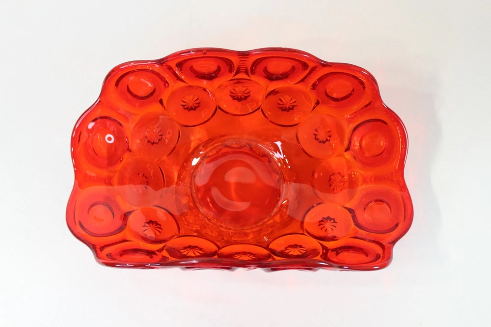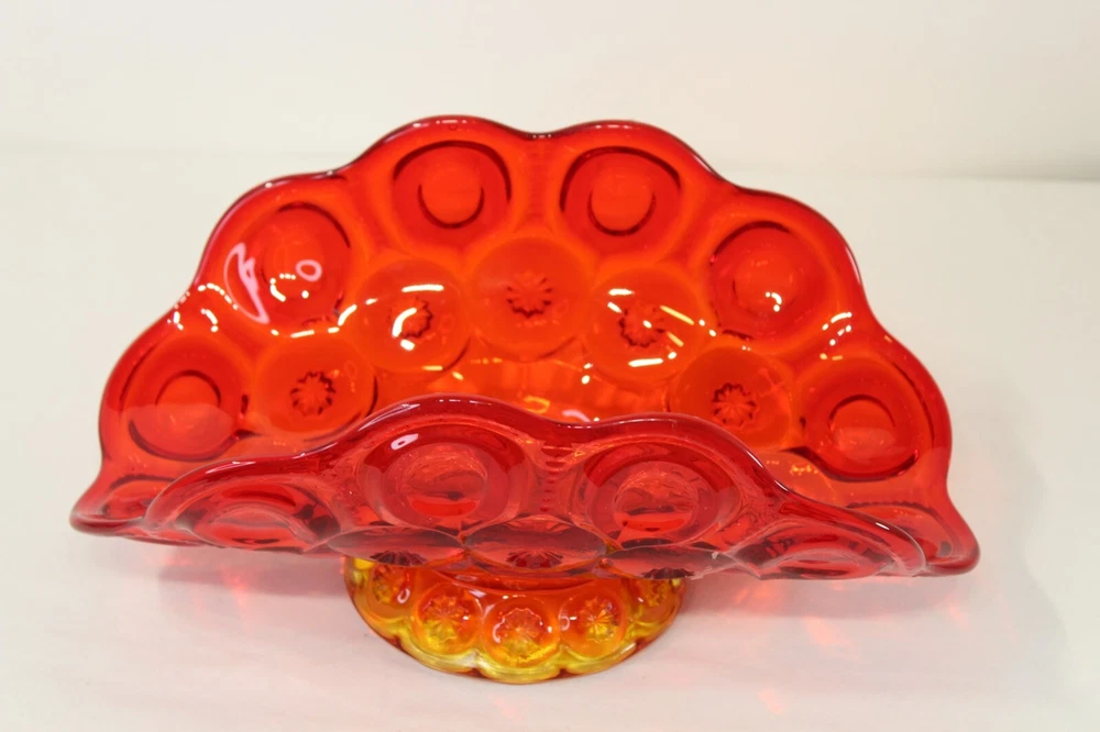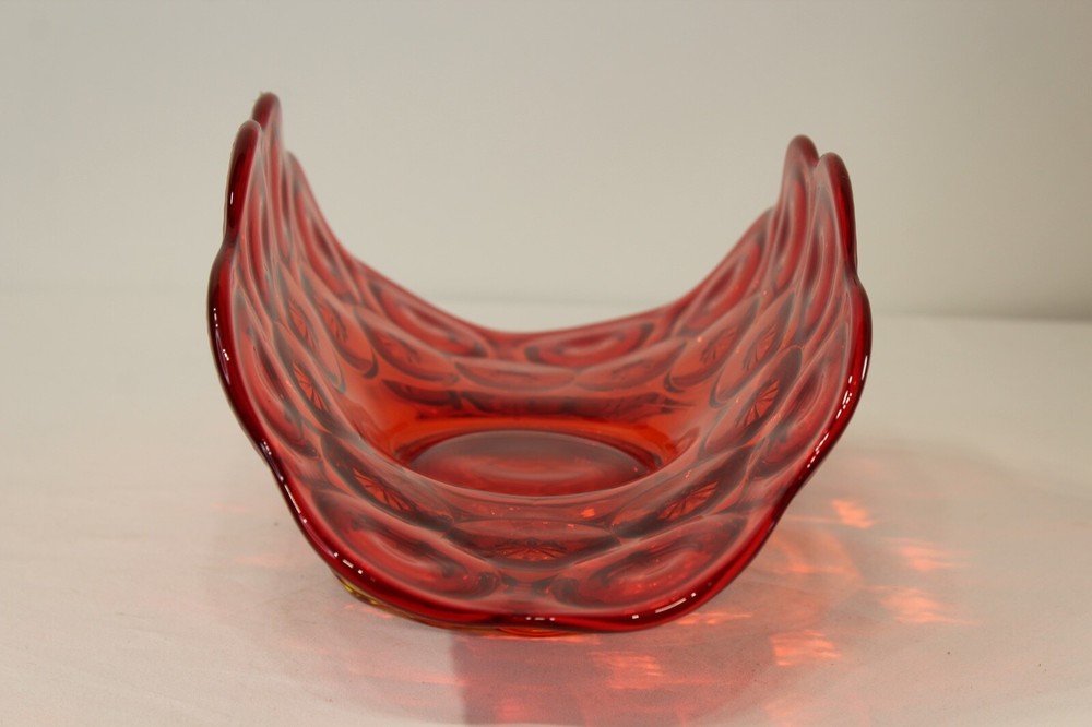 Hello, you are viewing my listing for a Vintage MCM Mid Century Modern Amberina Glass Vase with an Unusual Oval Shape. This is a Red and Orange Color Glass. It weighs 3.6 pounds and measures 12 and 3/4" long by 7 and 1/4" wide by 5 and 1/2" tall. It is in very good condition with minimal wear present. There are no breaks, chips, or repairs. Local pickup is accepted. Please view all my photographs for further details. Please note all sales are final. There are no returns, trades, or exchanges permitted. The buyer is asked to please make payment within 3 days of purchasing this glass vase. Thank you. I do require a signature upon receipt for all the items I sell. I do combine shipping on most items. COME VISIT MY E-BAY STORE JUNKENTREASURES OFTEN SINCE I ADD INTERESTING ITEMS ON A DAILY BASIS.