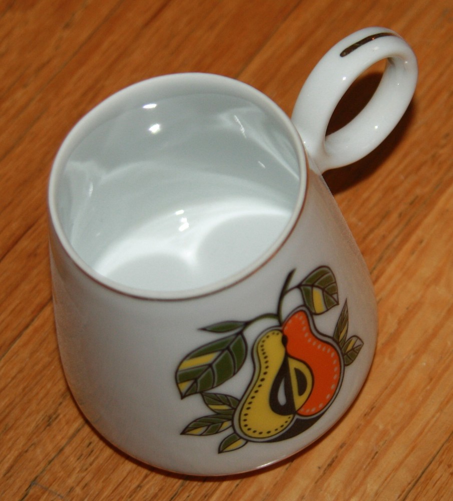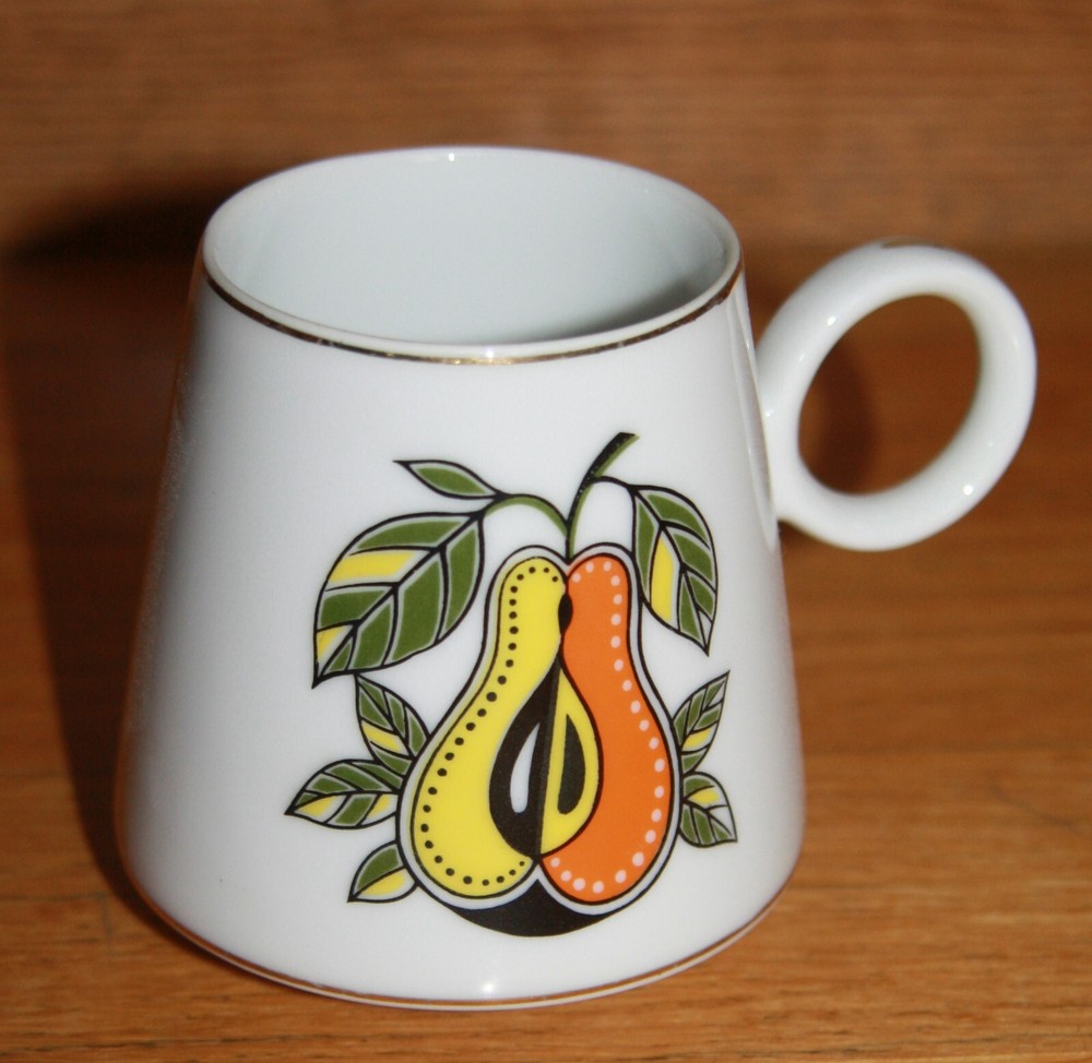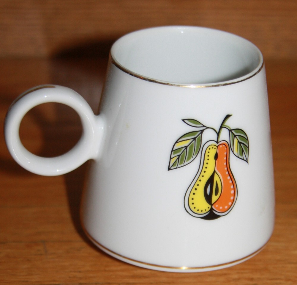 Vintage mug. Graphic pear in the style of Georges Briand. Graduated shape. 3.5" tall.