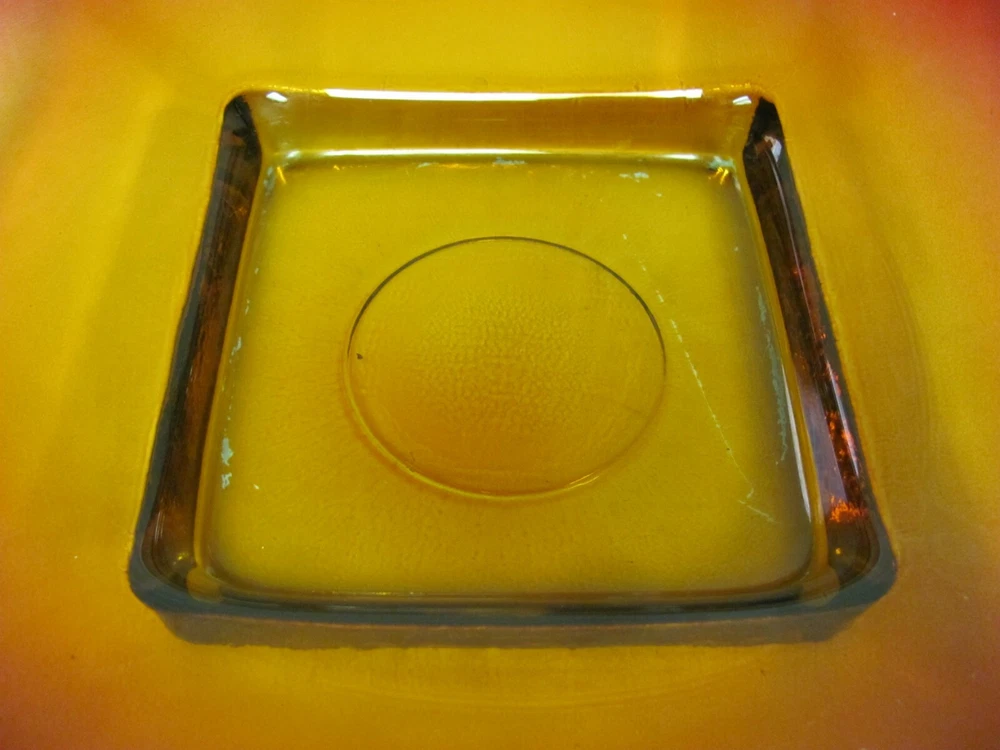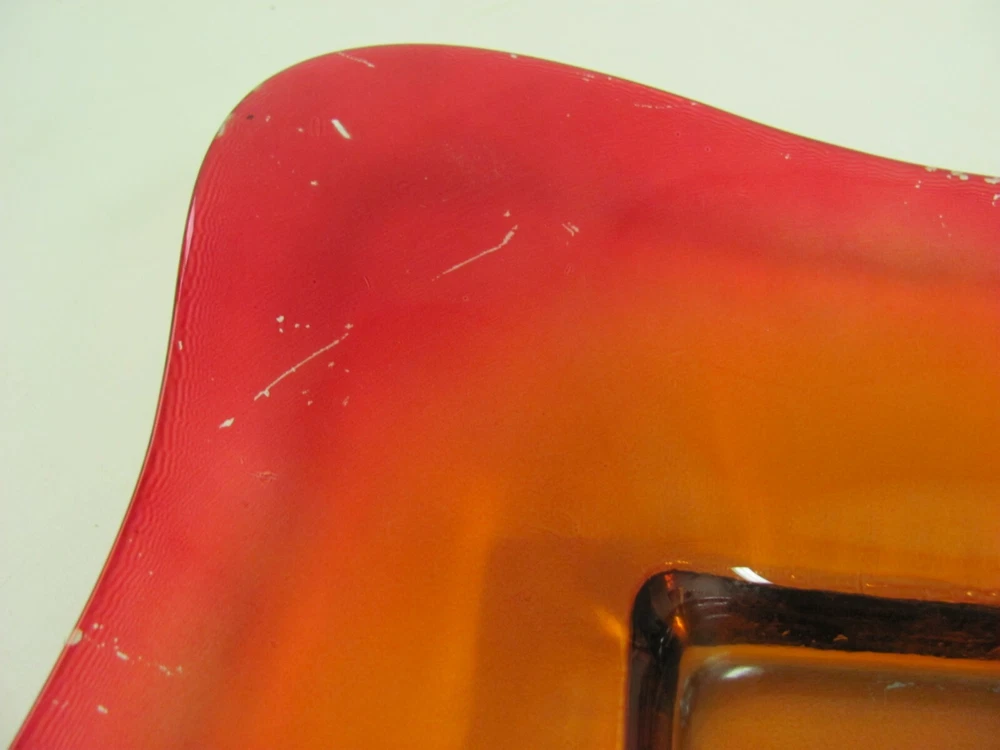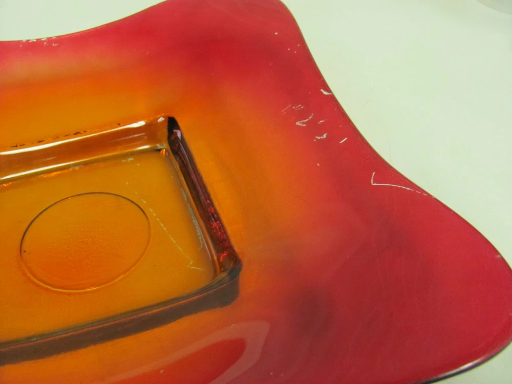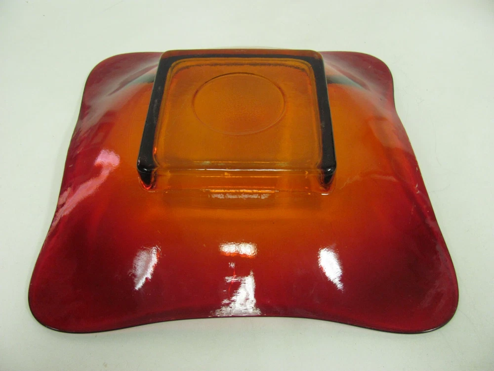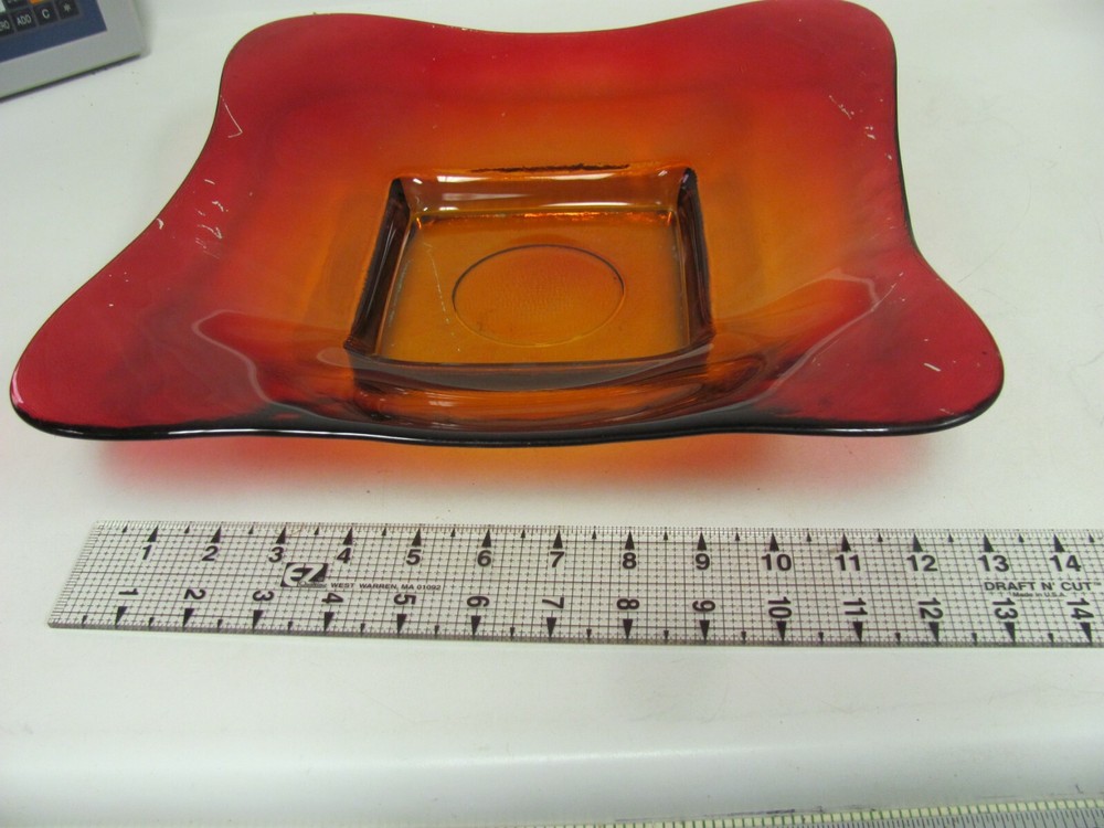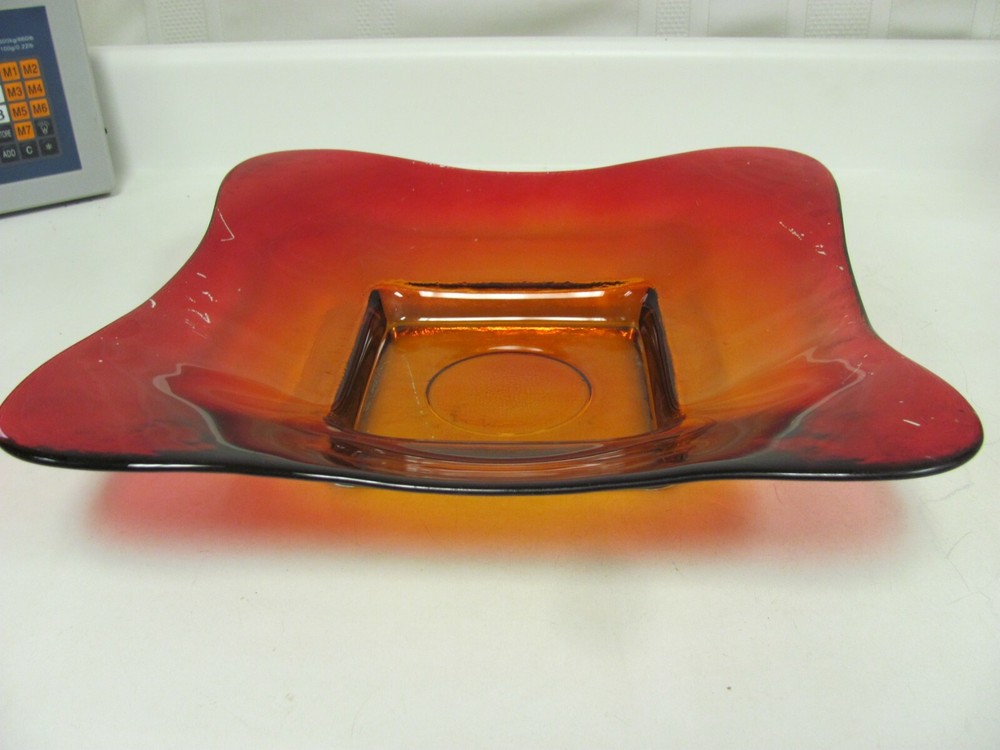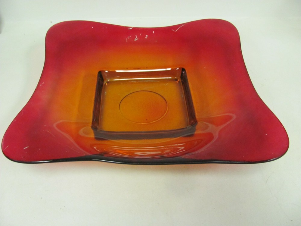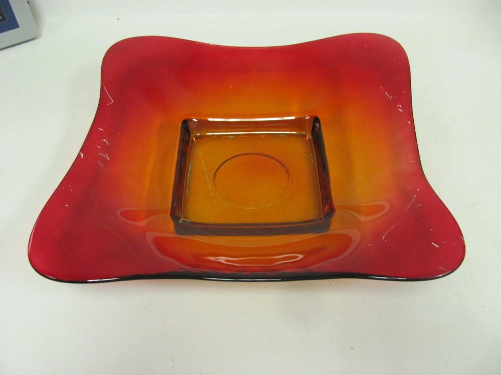 Vintage MCM Red Orange Glass Square Bowl Tray Plate 13" Great to use as a coffee table tray.