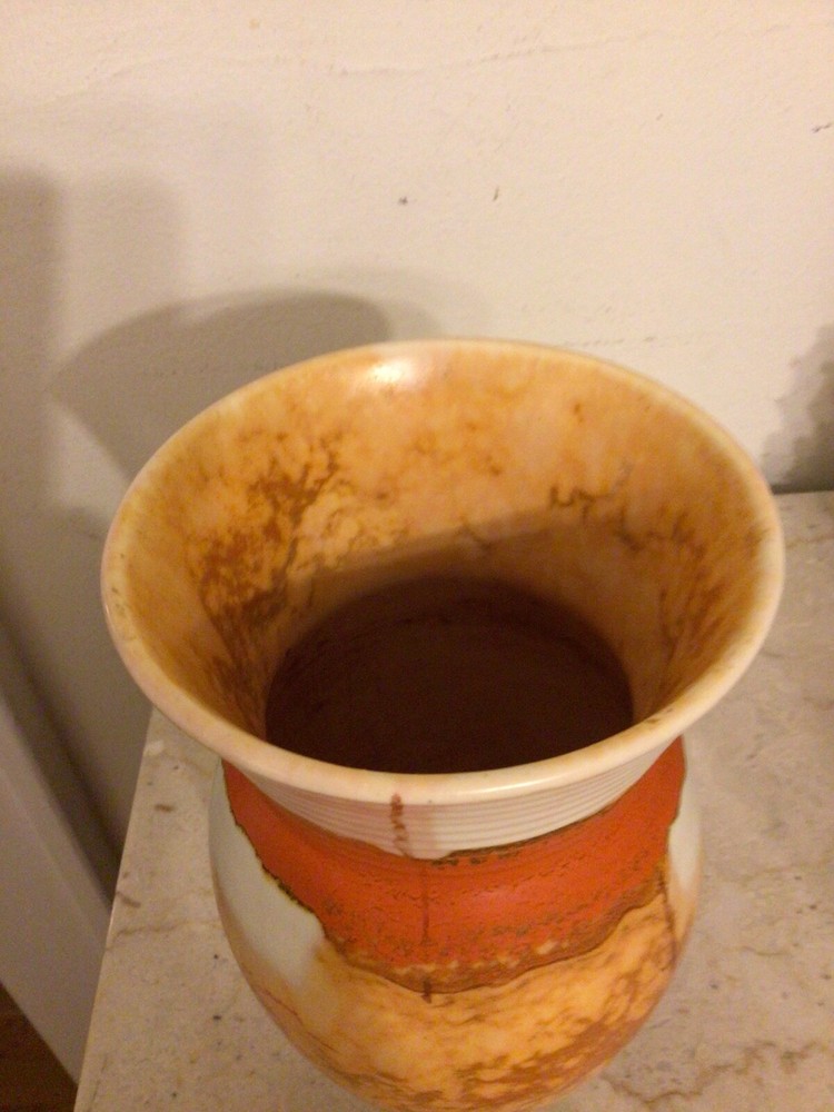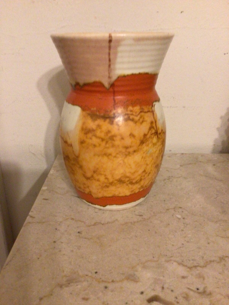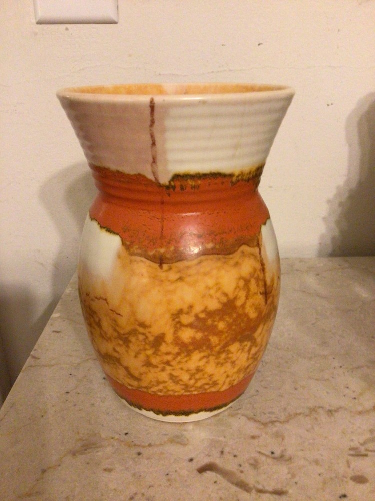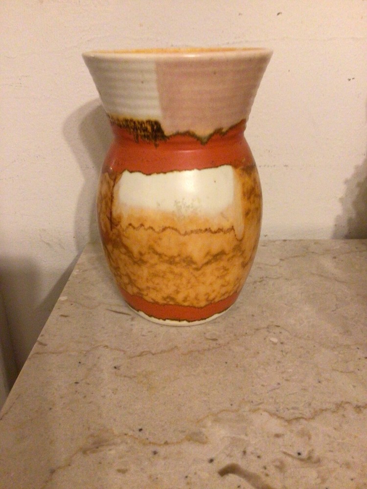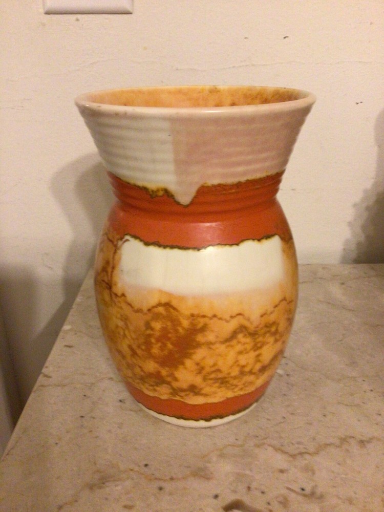 You are buying a vintage MCM Mid Century Modern, drip glaze vase. The vase is 6.75" in height by 4.5" in width. Nice with no chips, some glaze crazing. It will be well wrapped. sorry I do not accept returns. All items are sold as-is. Thanks for looking.
