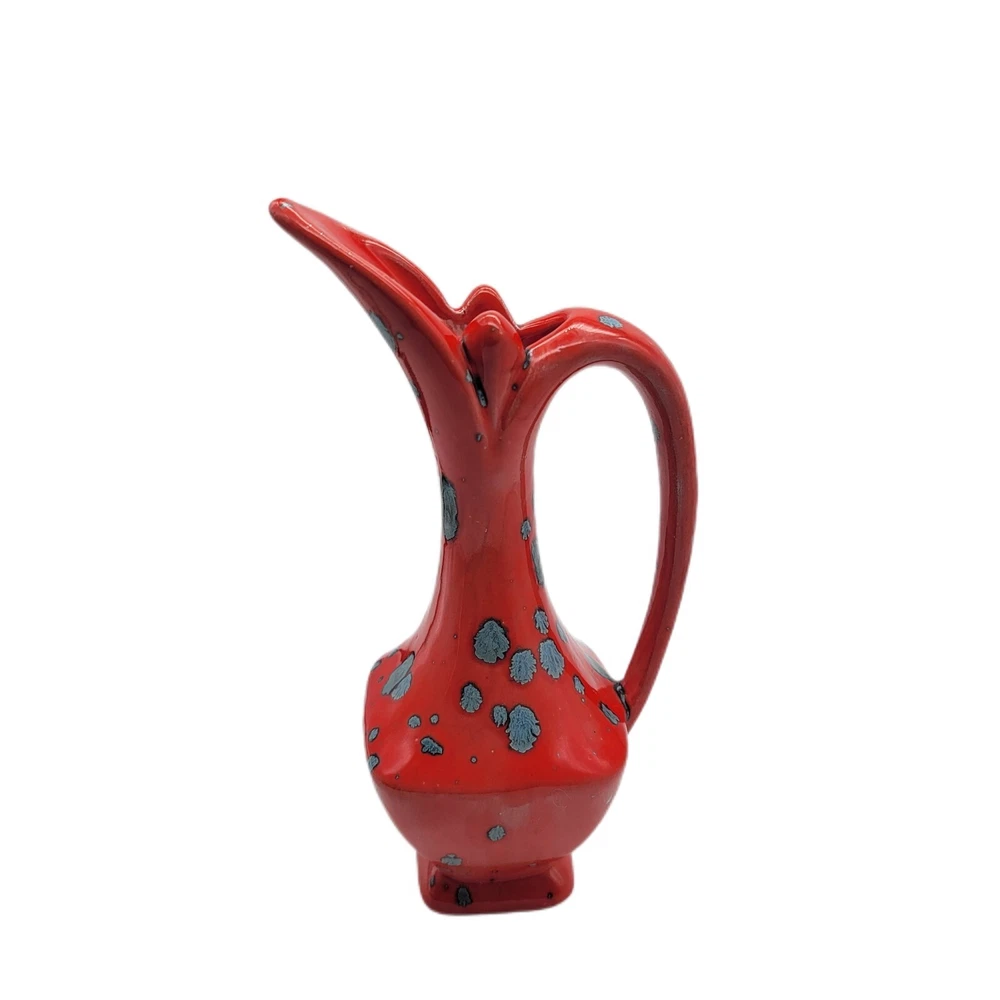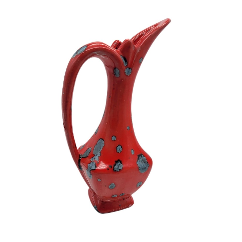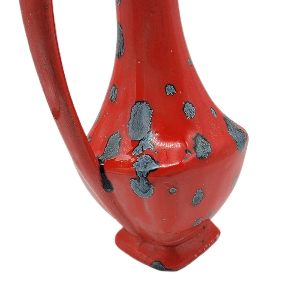 Vintage MCM Retro Orange Glaze 7.5" Handle Pitcher Vase...