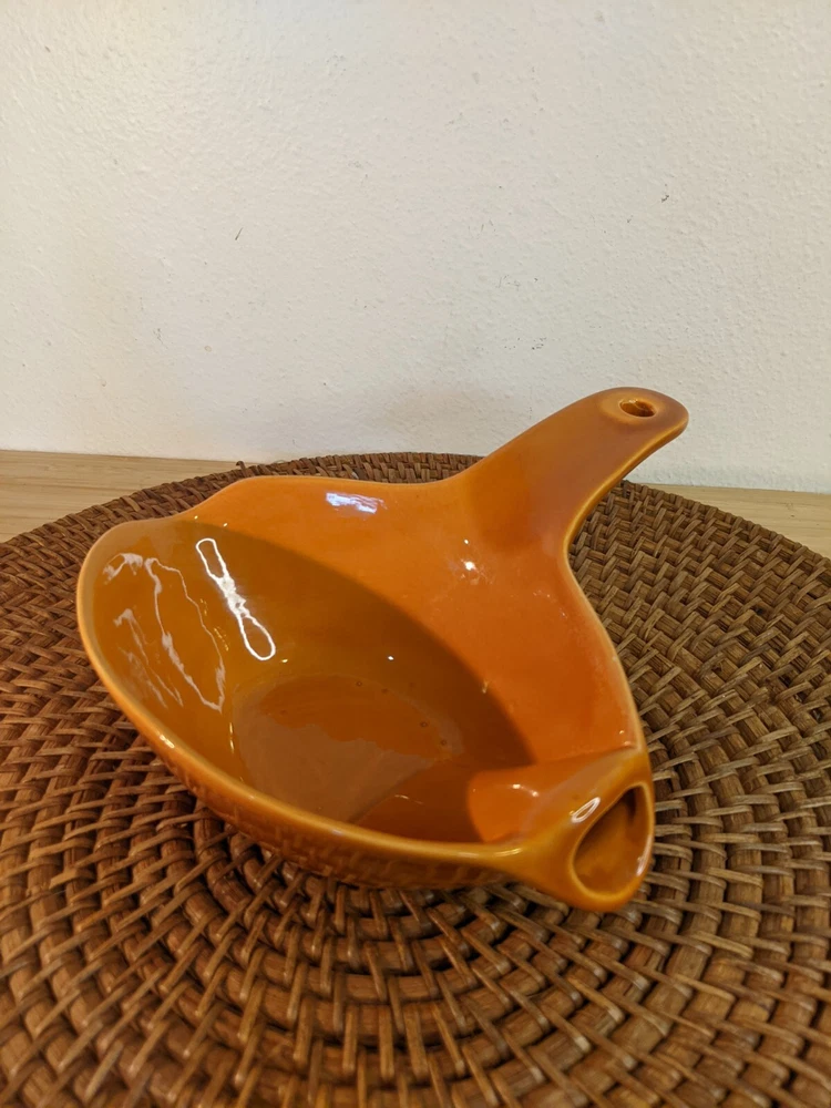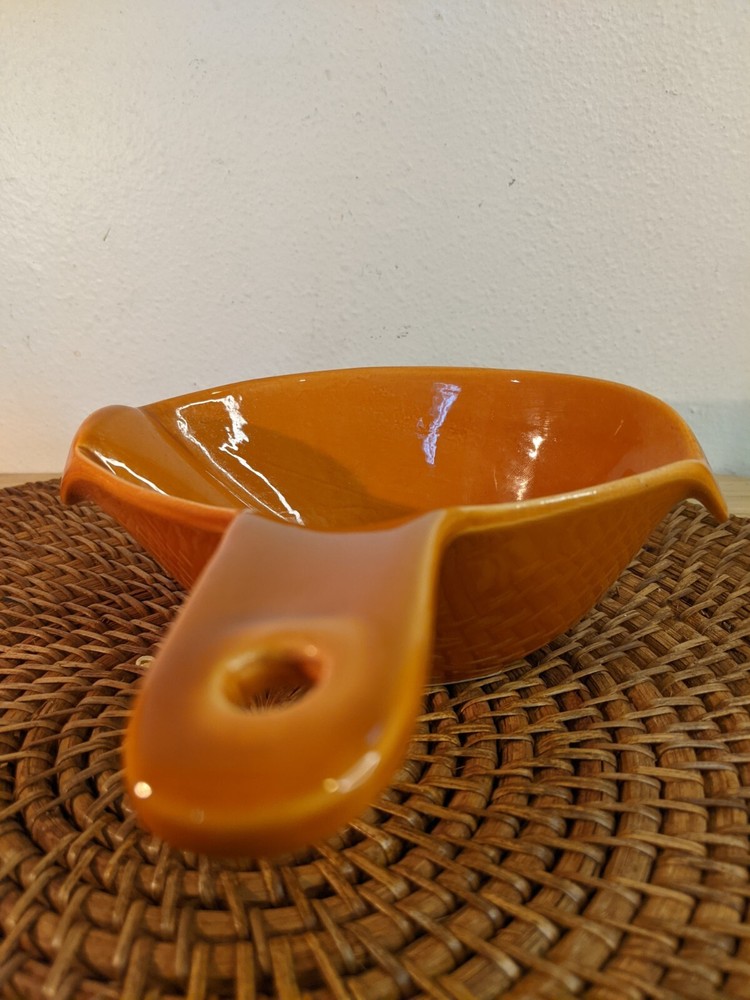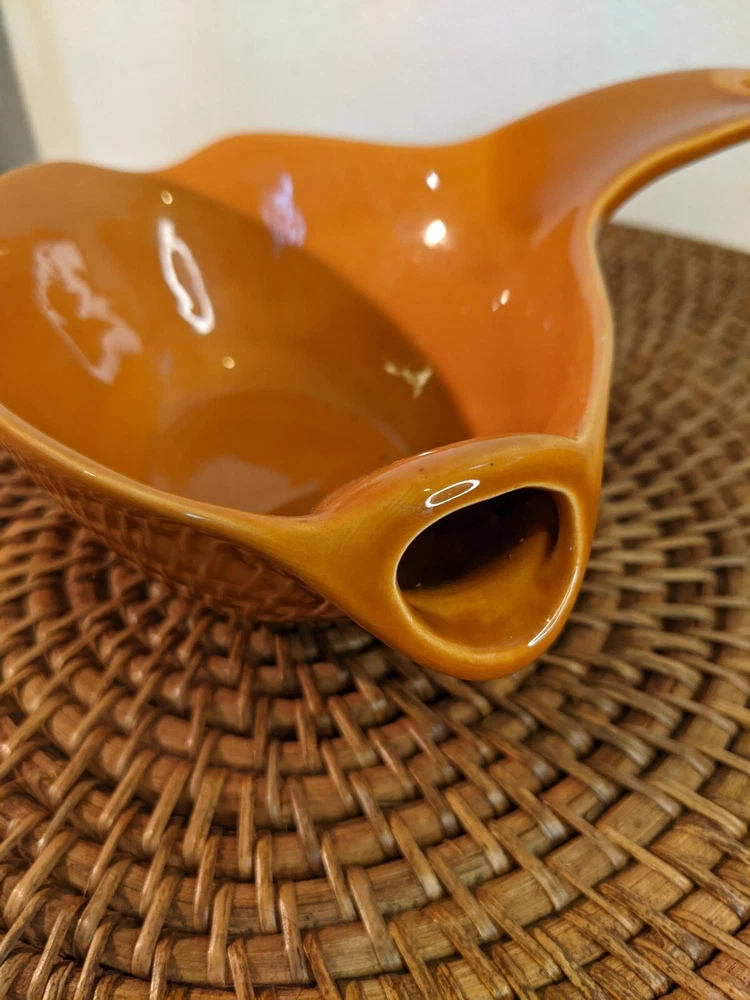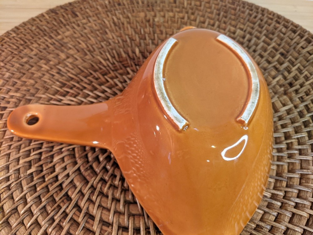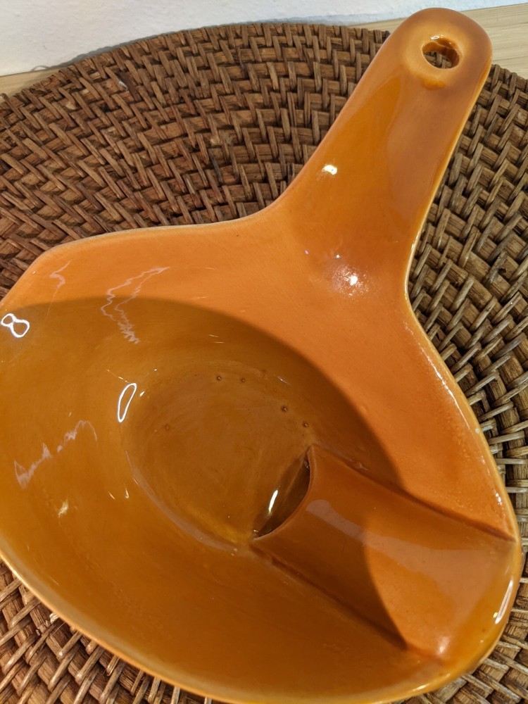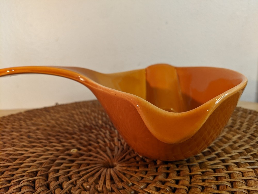 Great vintage gravy boat in ceramic. Bright retro orange color. No flaws or chips. 8" long and 2.5" high